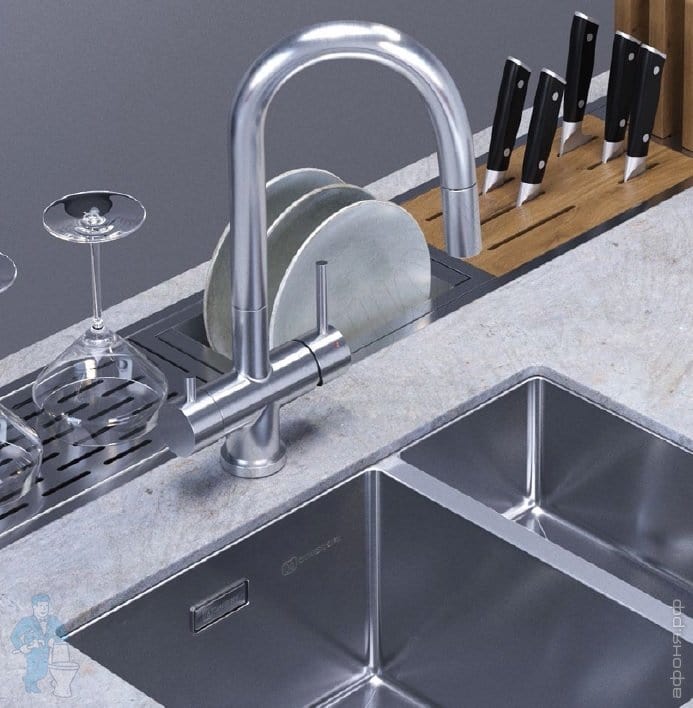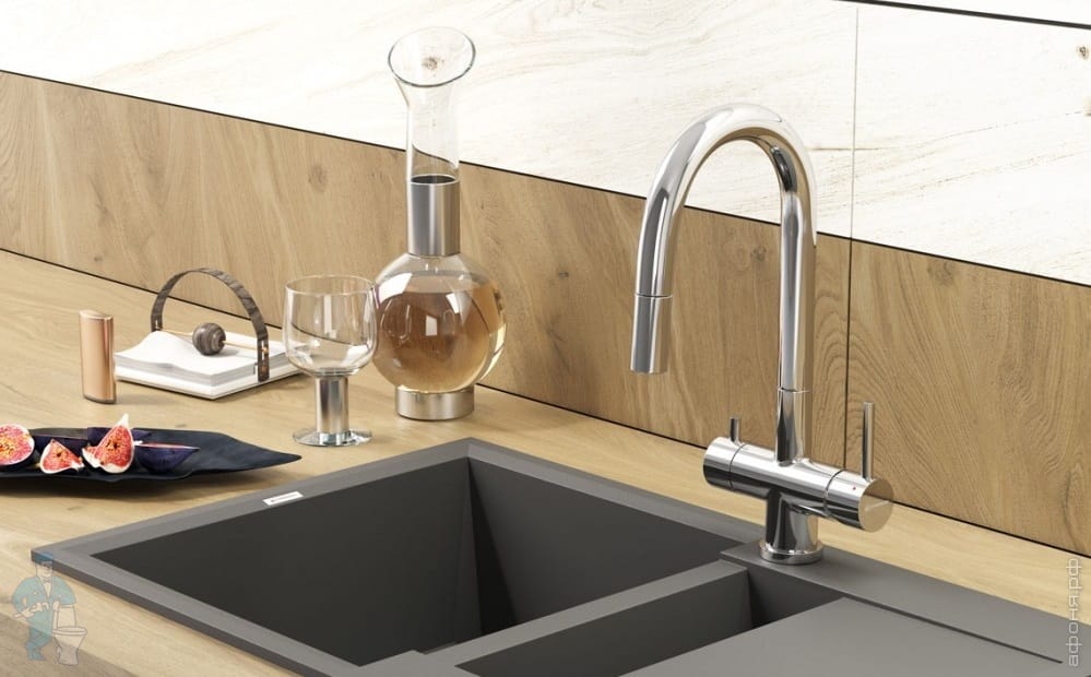 Смеситель для мойки Omoikiri Akita нержавеющая сталь, с краном для питьевой воды 4994086 (OAK-IN-35)Код: 99282