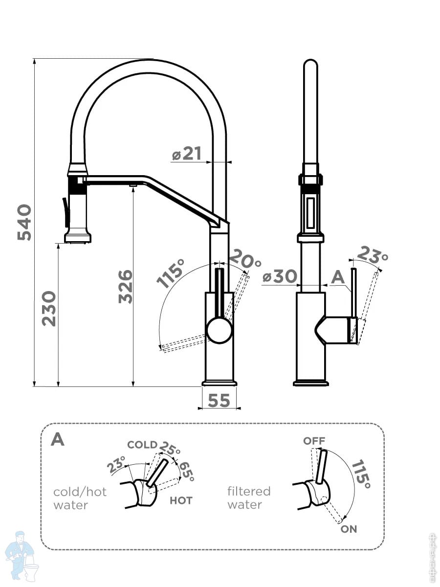 Смеситель для мойки Omoikiri Makkari 2 Plus-SB-GM-BL вороненая сталь, кран для питьевой воды 4994497Код: 296297
