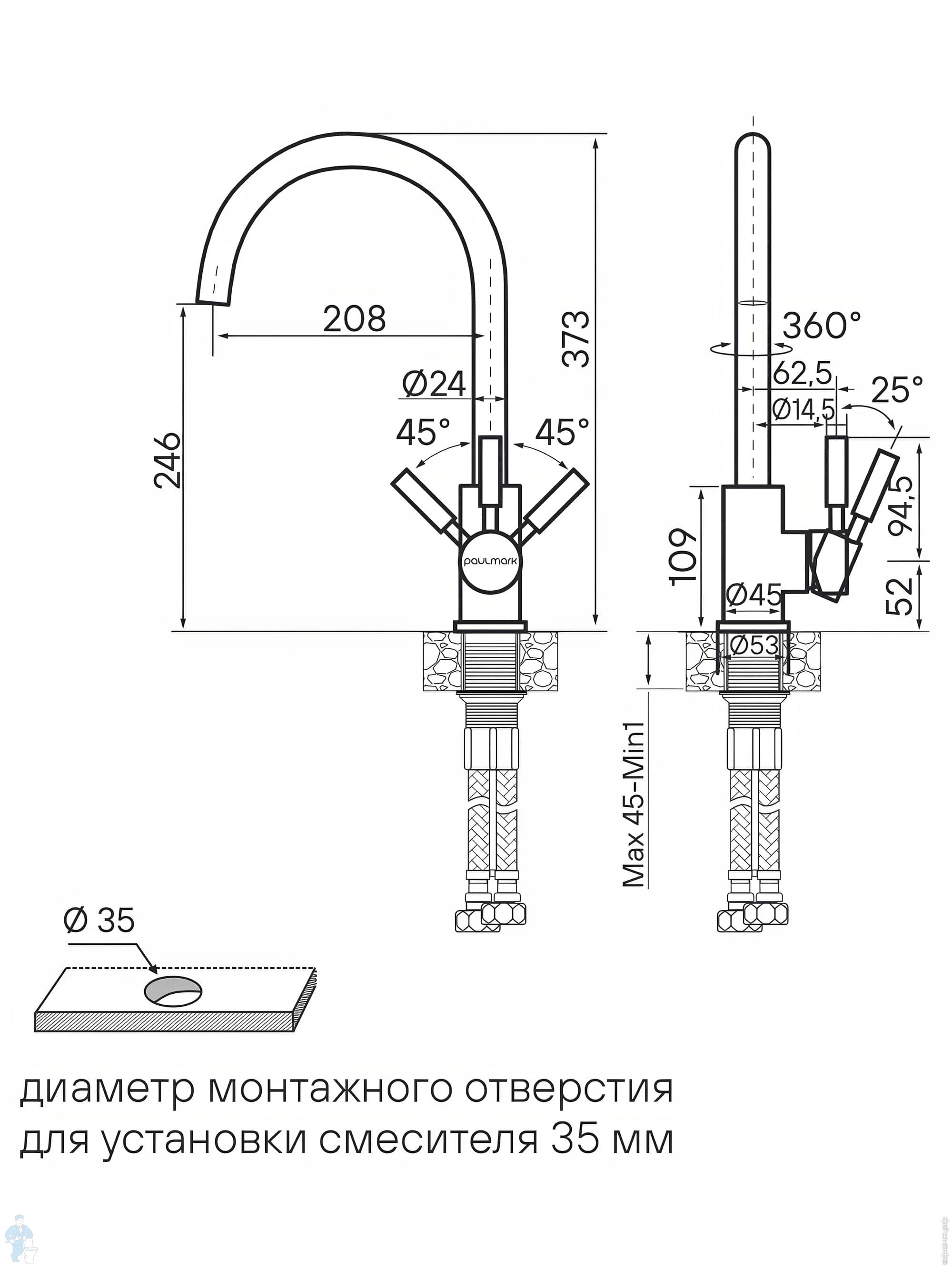 Смеситель для кухни Paulmark HOLSTEIN однозахватный, высокий излив, латунь, браш. сталь, Ho212063-BSКод: 998502