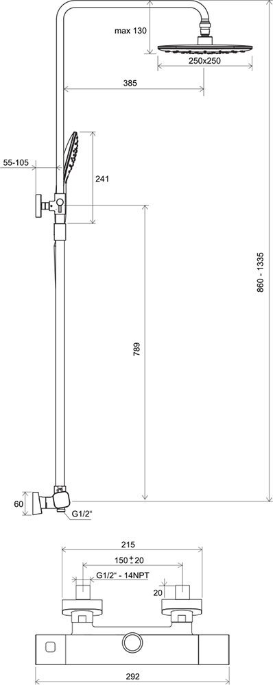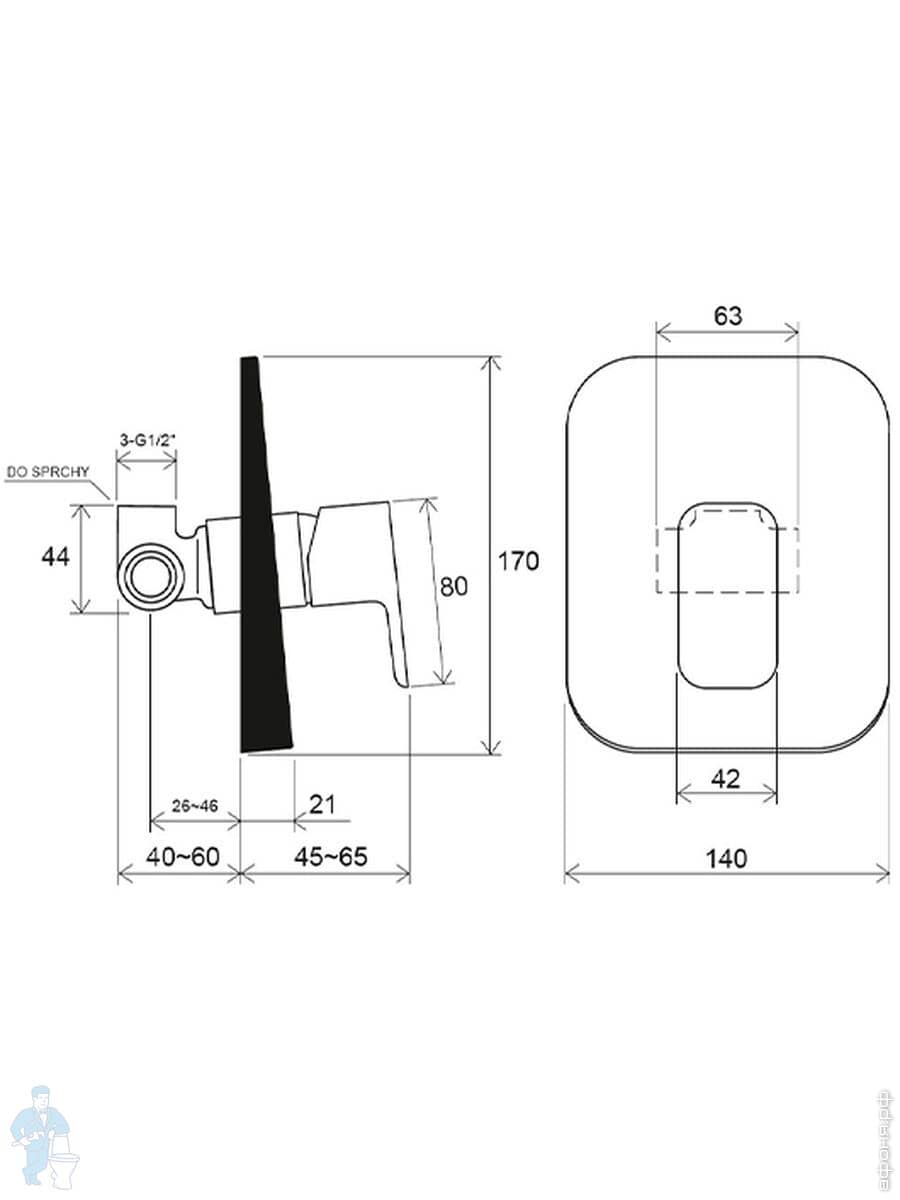 Смеситель для ванны/душа RAVAK 10° Free TD F 061.20 встраиваемый, однозахватный, черный мат. X070156Код: 240616