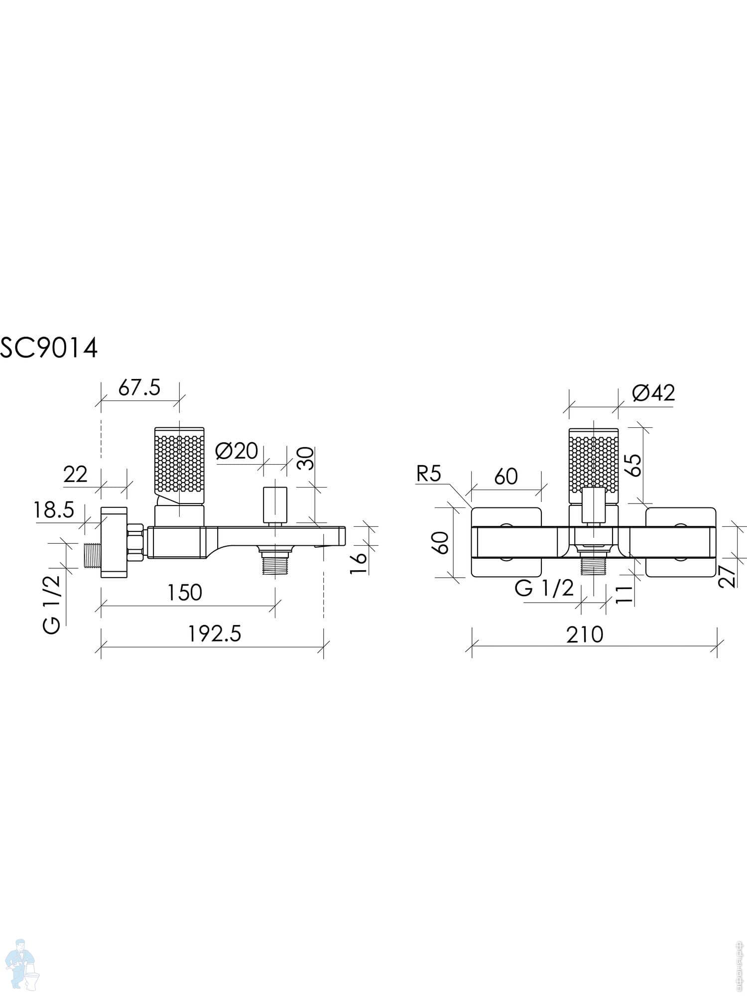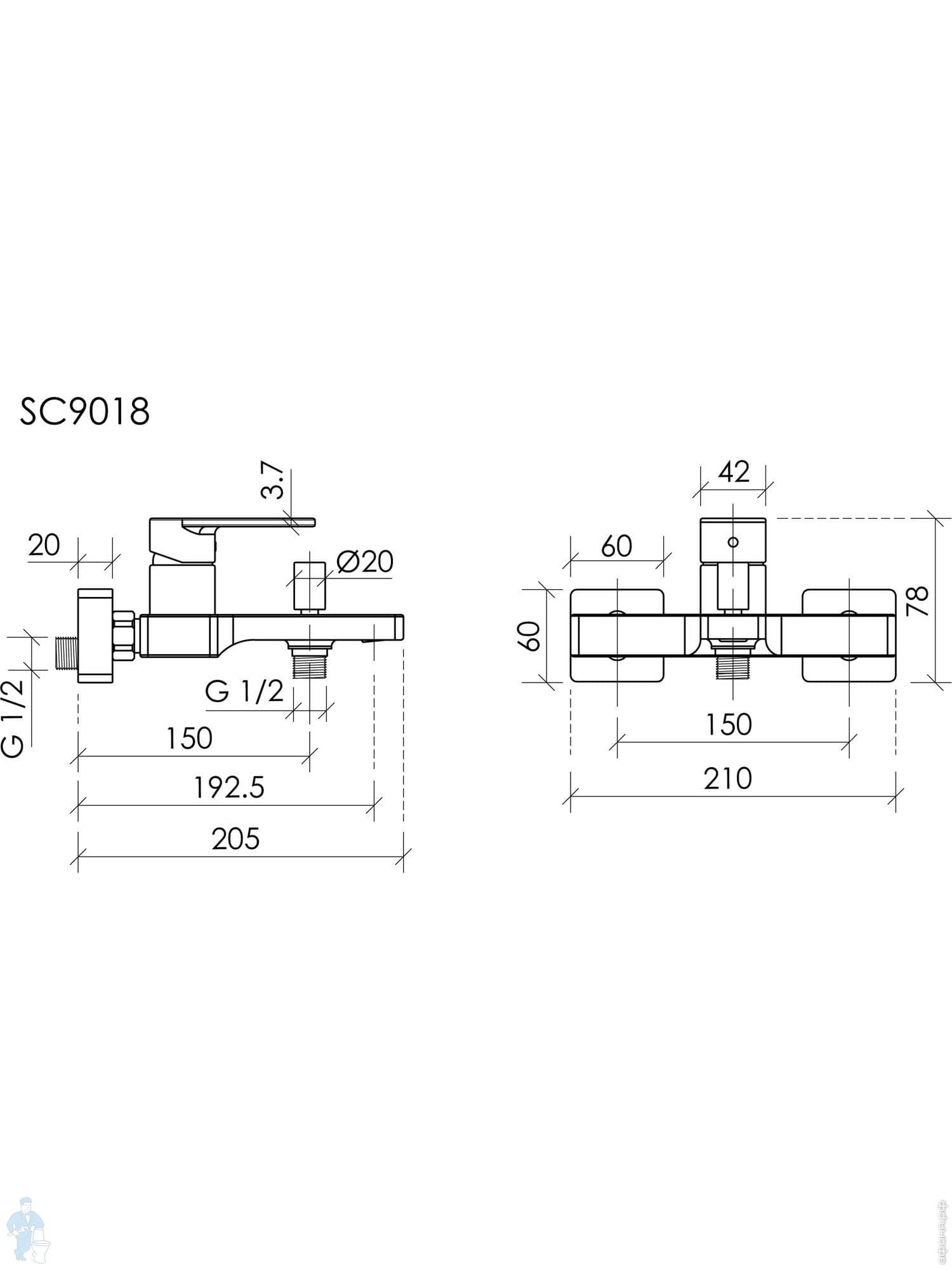 Смеситель для ванны/душа SANCOS Studio SC9018CH настенный, однозахватный, короткий излив, цвет: хромКод: 385240
