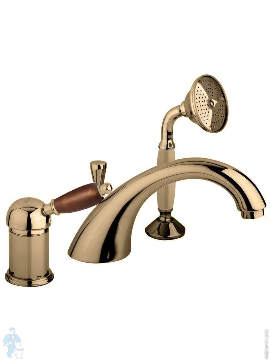 Смеситель CEZARES ELITE BVDM-03/24-Nc на борт ванны, 3 отверстия, однорычаж.,золото 24кар/ручка орехКод: 75472
