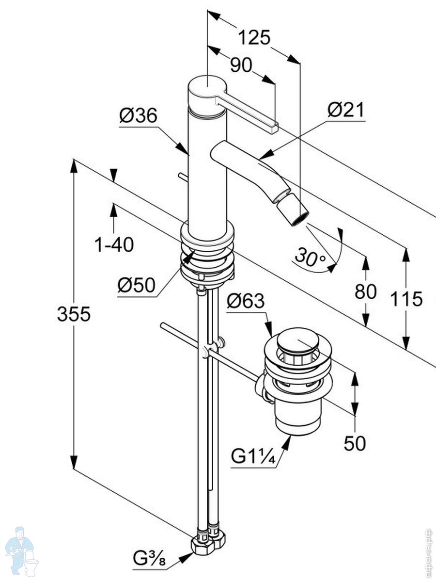 Смеситель KLUDI Nova Fonte Pura для умывальника, излив 75мм, без дон. клапана, черный мат. 200283915Код: 261172