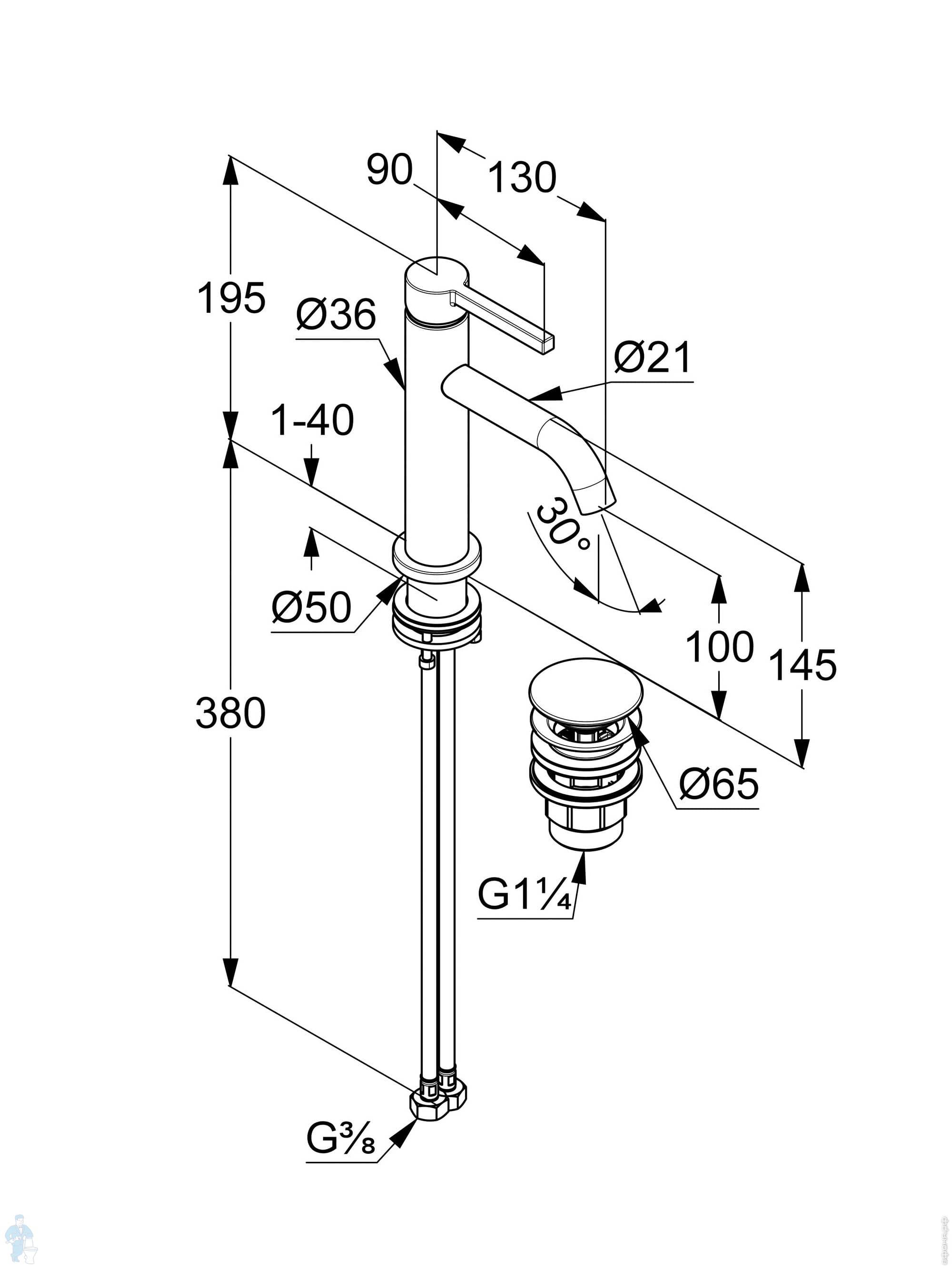 Смеситель для умывальника KLUDI Nova Fonte Pura 100 мм,однозахват.,донный клапан,бел. мат. 202885315Код: 295569