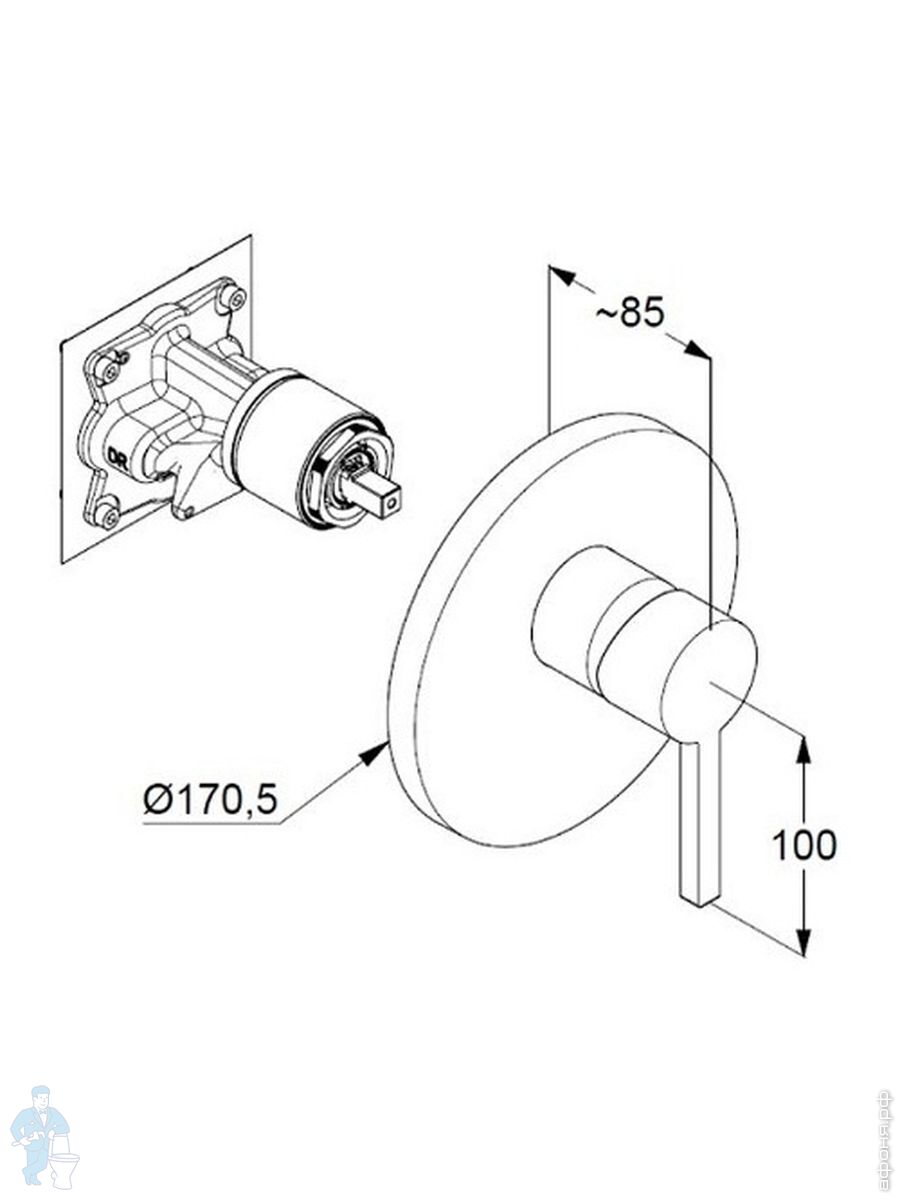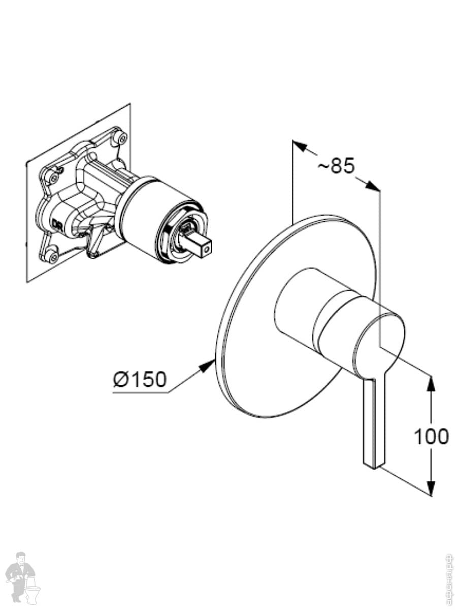 Смеситель KLUDI Nova Fonte Puristic для ванны/душа, встраиваемый,однозахват.,белый матовый 206595315Код: 296679