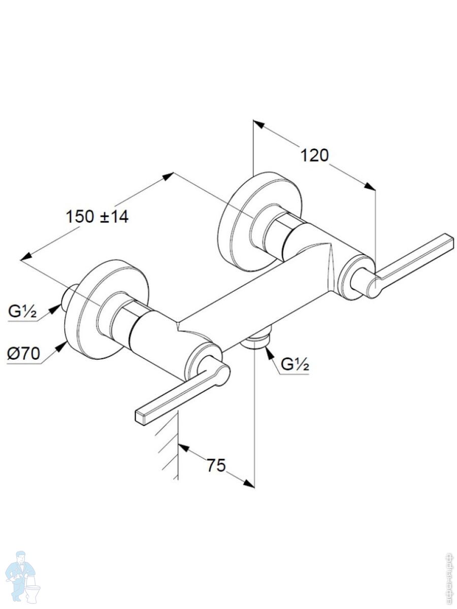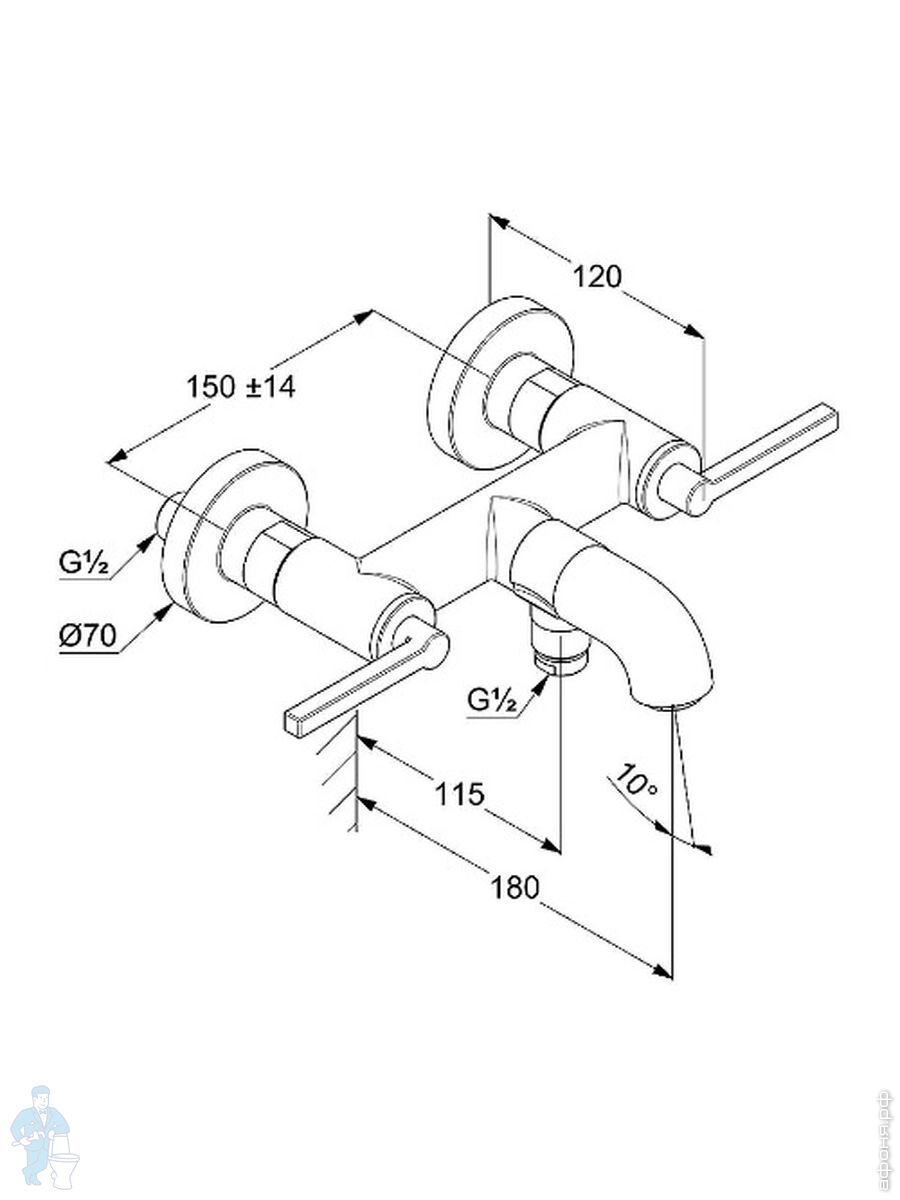Смеситель KLUDI Nova Fonte Puristic для ванны/душа, настенный, двухзахватный,белый матовый 205405315Код: 296687