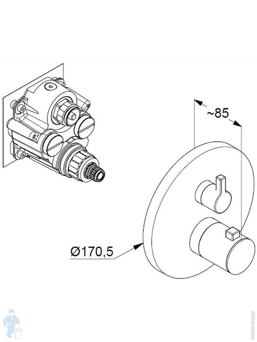 Смеситель KLUDI Nova Fonte Puristic для ванны/душа, встраиваемый, термостат, белый матовый 208305315Код: 296678