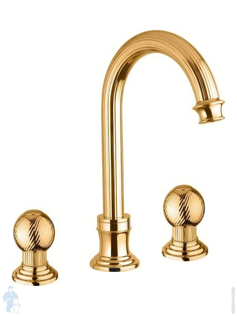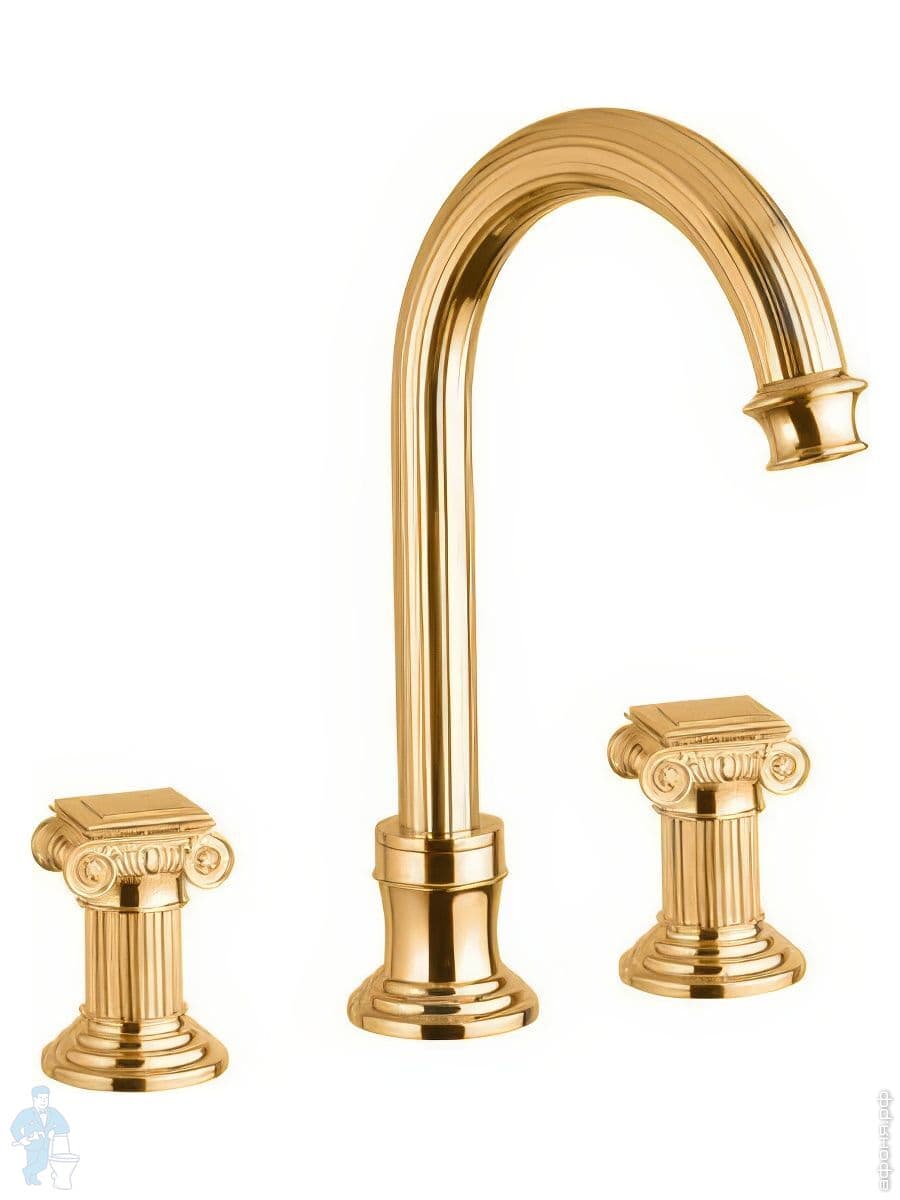 Смеситель CEZARES OLIMP-BLS2-A-03/24-O для раковины, 3 отверстия, донный клапан, золото/ручки металлКод: 80018