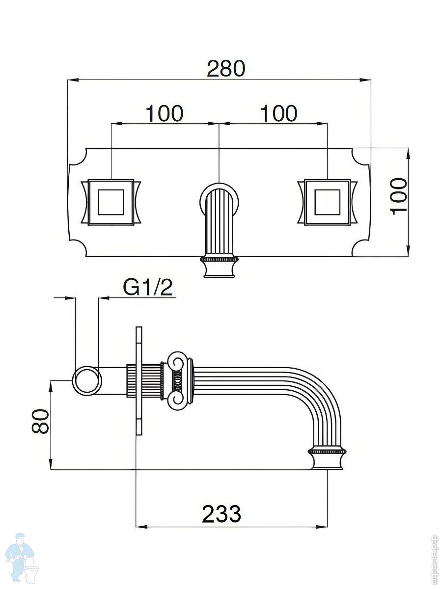 Смеситель CEZARES OLIMP-BLS2-02-Sw для умывальника, встраиваемый, дон.клапан, бронза/ручки SwarovskiКод: 80051