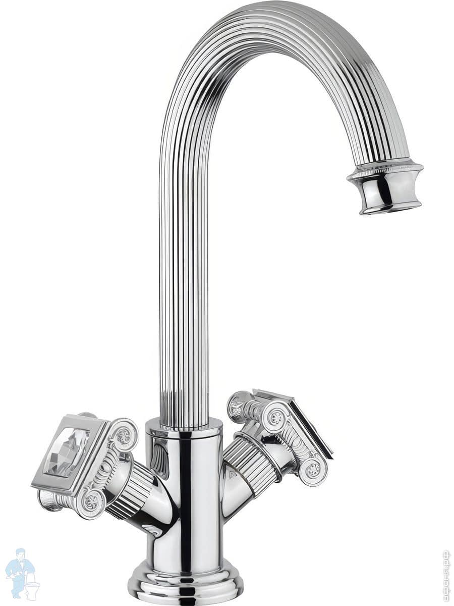 Смеситель CEZARES OLIMP-LS2-03/24-Sw для раковины, с донным клапаном,золото 24 карат/ручки SwarovskiКод: 79494