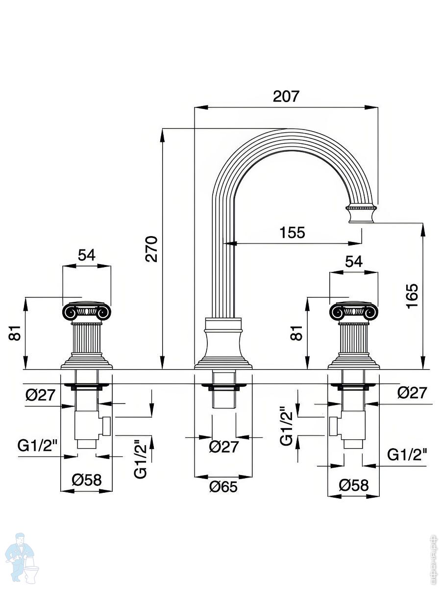 Смеситель CEZARES OLIMP-BLS2-A-02-Sw для раковины, 3 отверстия, донный клапан,бронза/ручки SwarovskiКод: 80023