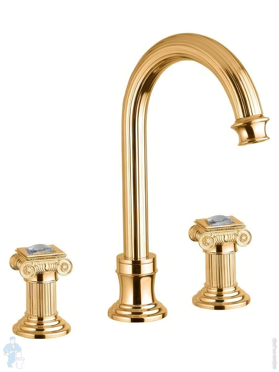 Смеситель CEZARES OLIMP-BLS2-A-03/24-Sw для раковины, 3 отвер., донный клапан,золото/ручки SwarovskiКод: 80024