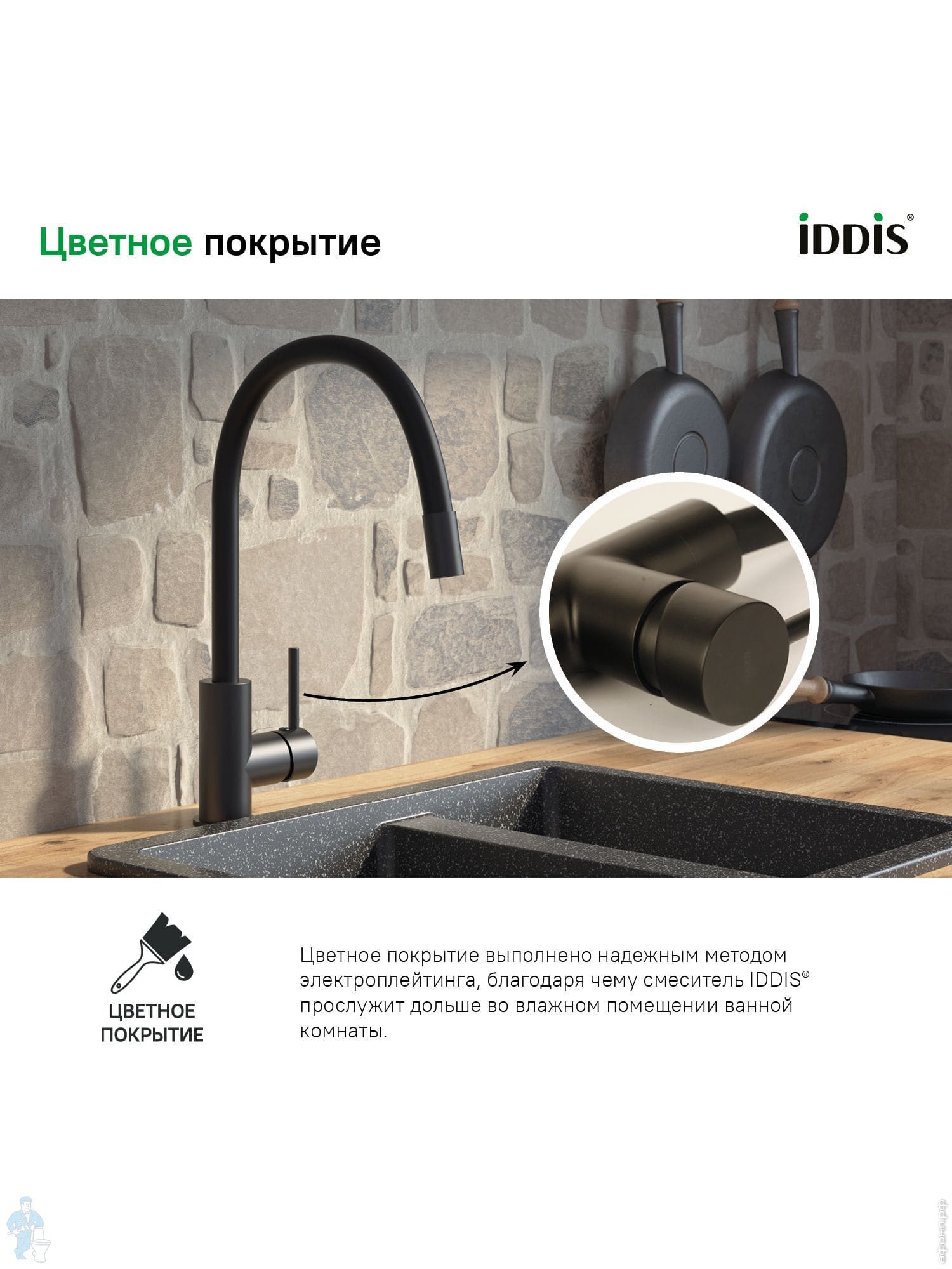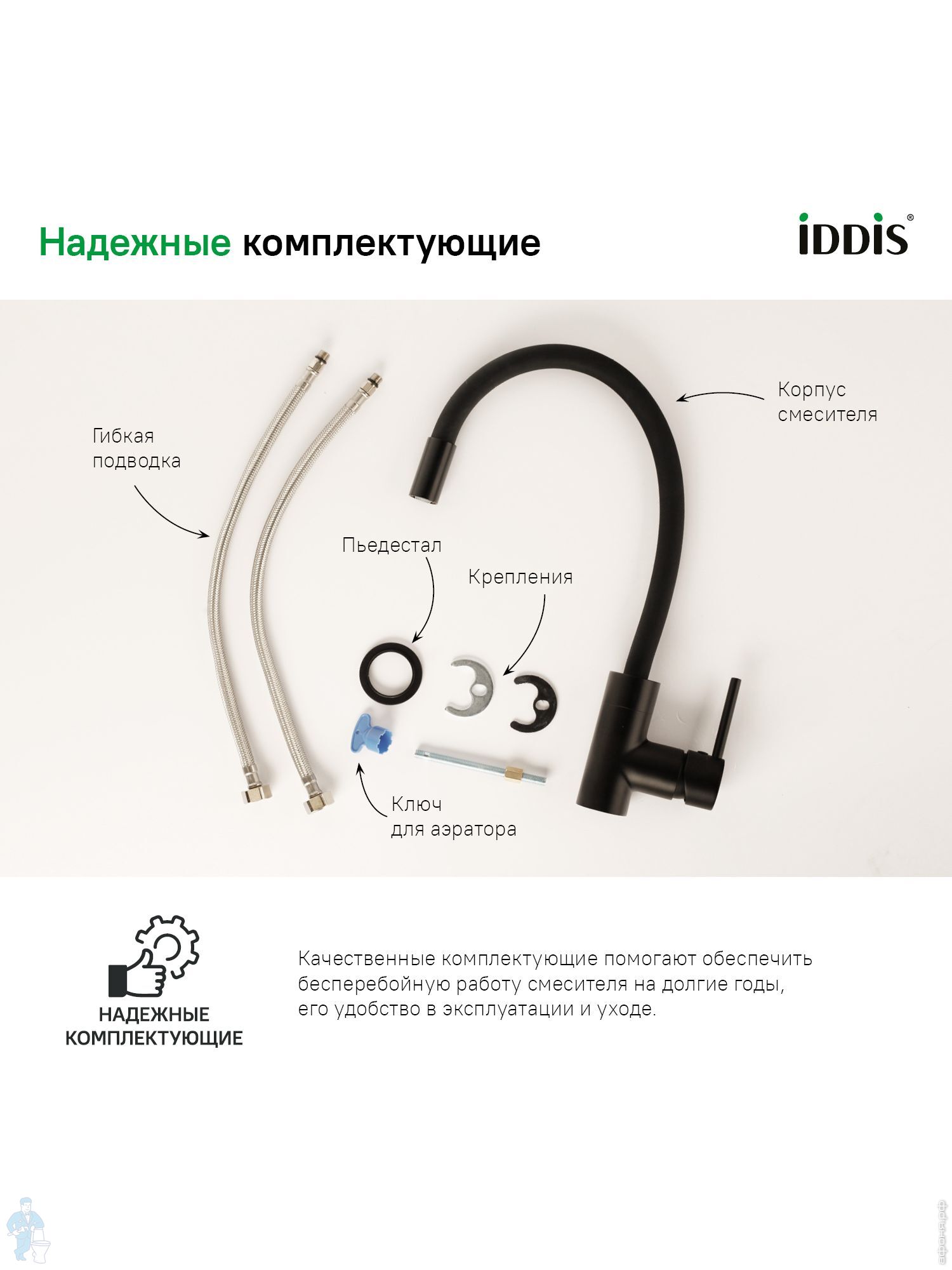 Смеситель IDDIS Kitchen 360 для кухни K36BLJ0i05 высокий излив, верх.шланг из силикона, матов.черныйКод: 2178372 отзыва