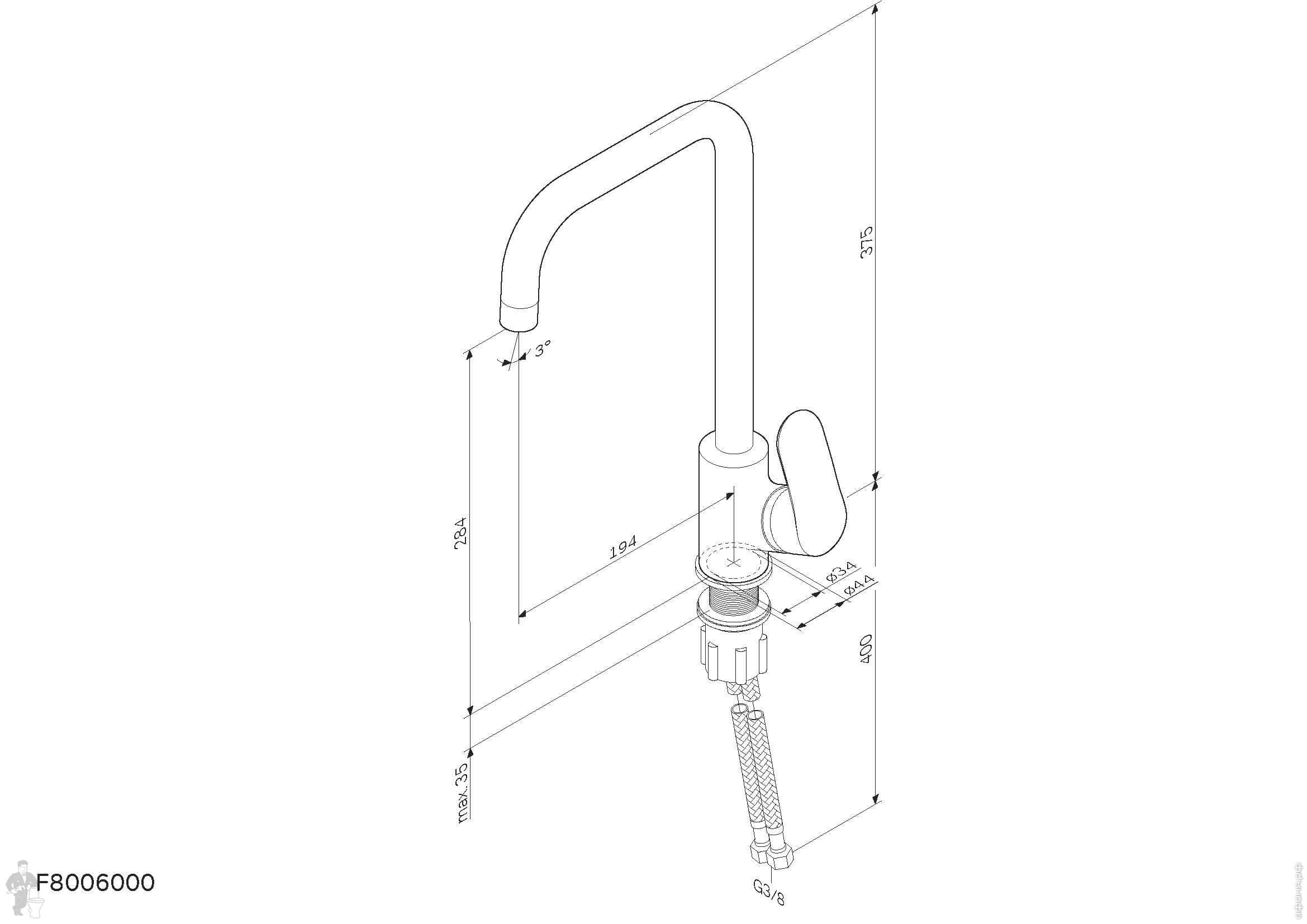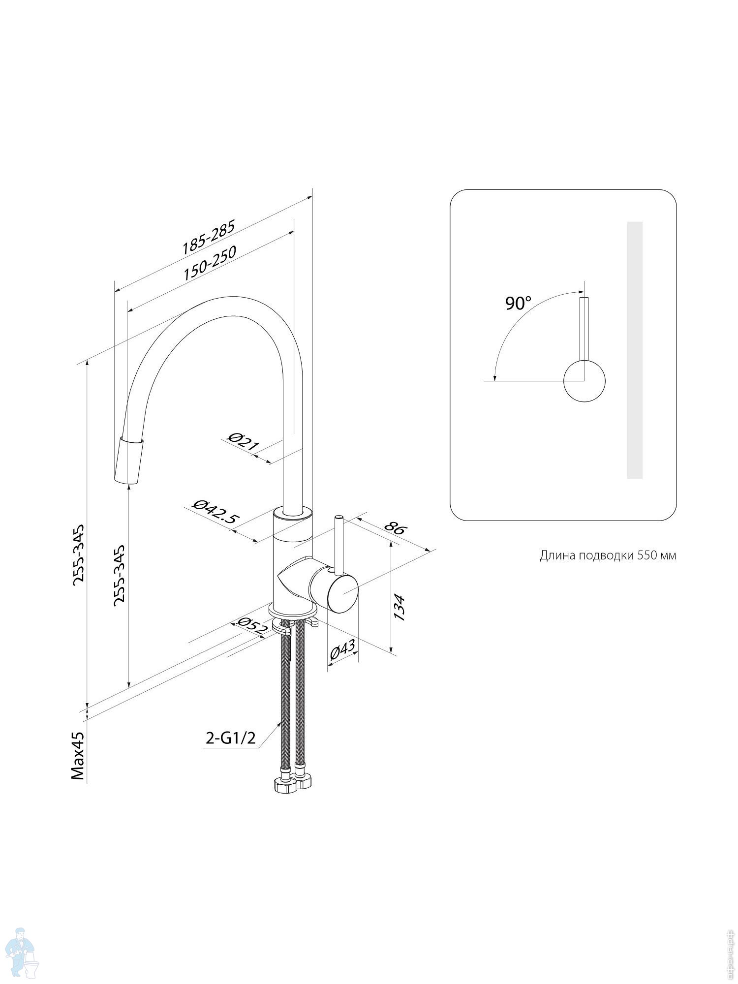 Смеситель для кухни Aqueduto Assistente ASI0100 однозахв., излив 226мм, с кан. д/фильтр.. воды, хромКод: 363672
