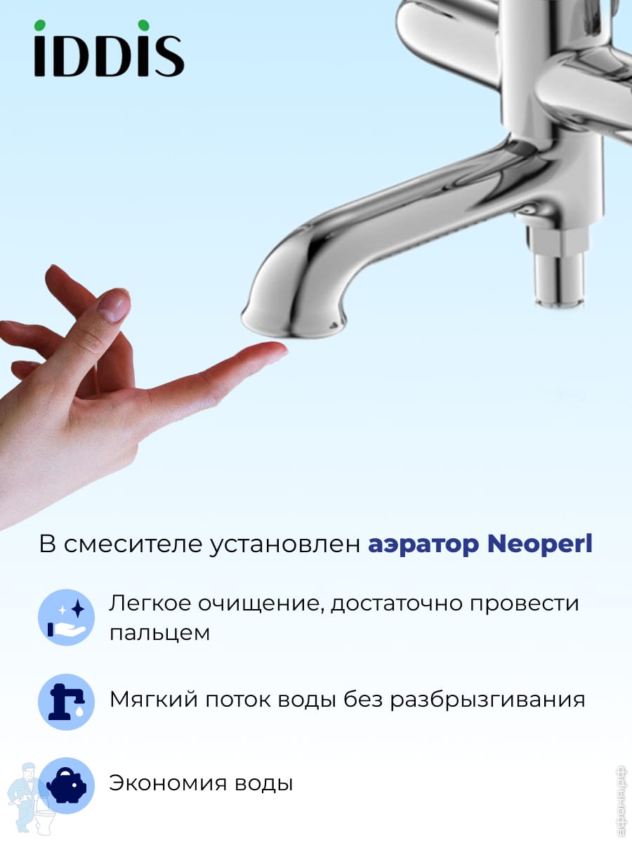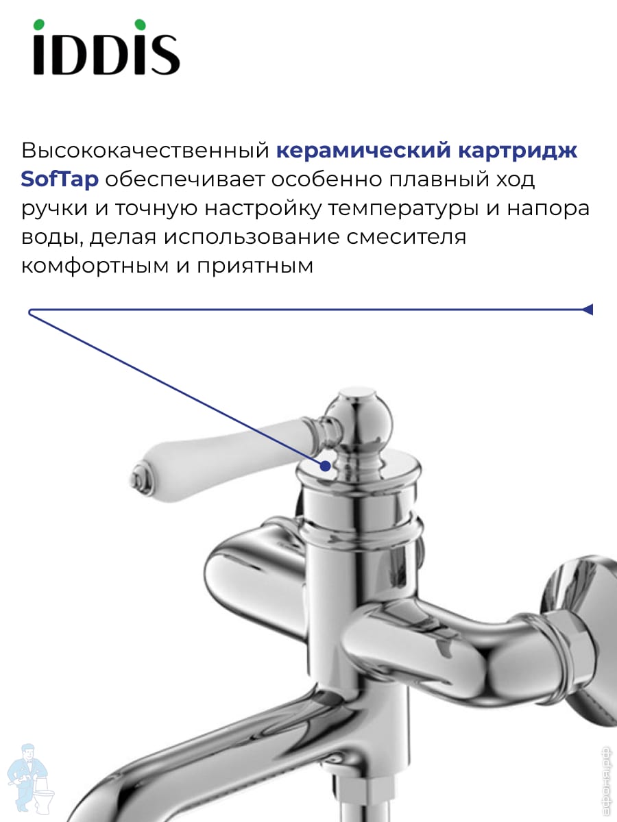 Смеситель IDDIS ZODIAC для ванны ZODSBL2i10WA однозахватный,с керам.дивертором, длинный излив 412 ммКод: 139096