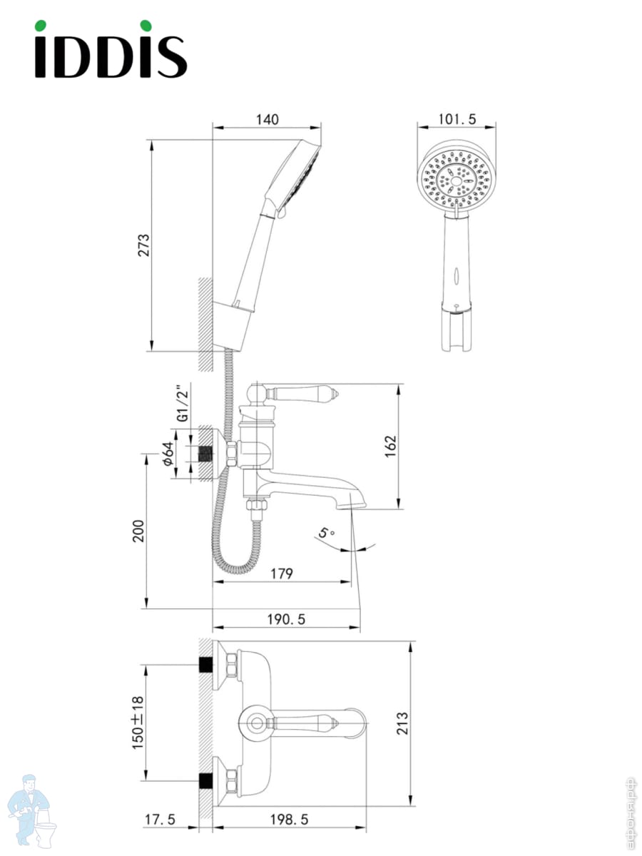 Душевая система Jacob Delafon Atom смеситель термостат, круглый верхний и ручной душ, хром E26237-CPКод: 236771