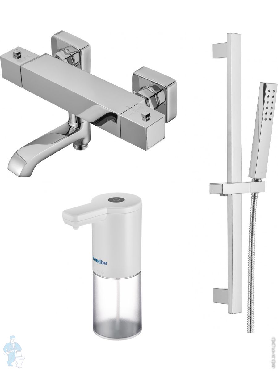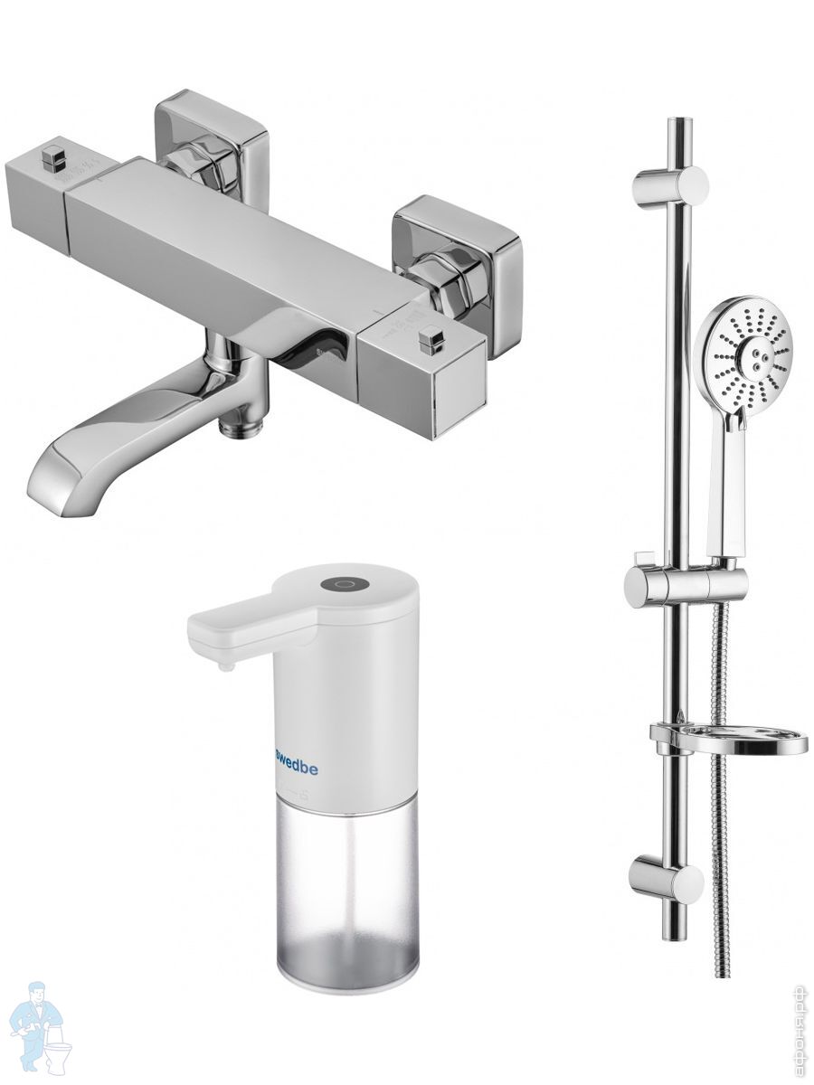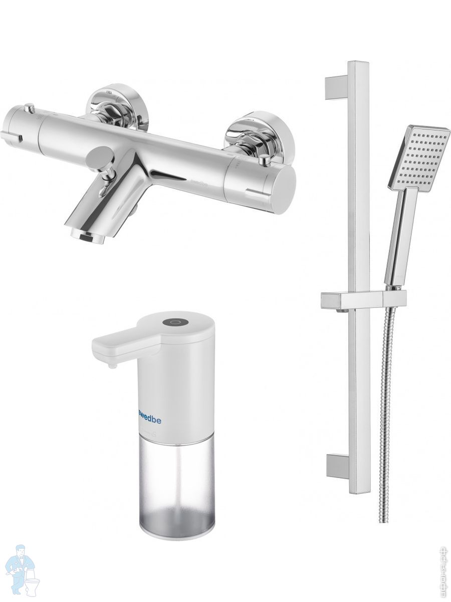 Смеситель для ванны Swedbe Mercury 9061 термостат+Душ.комплект Calypso 5086 1 реж.+Сенс.дозатор 0102Код: 256649