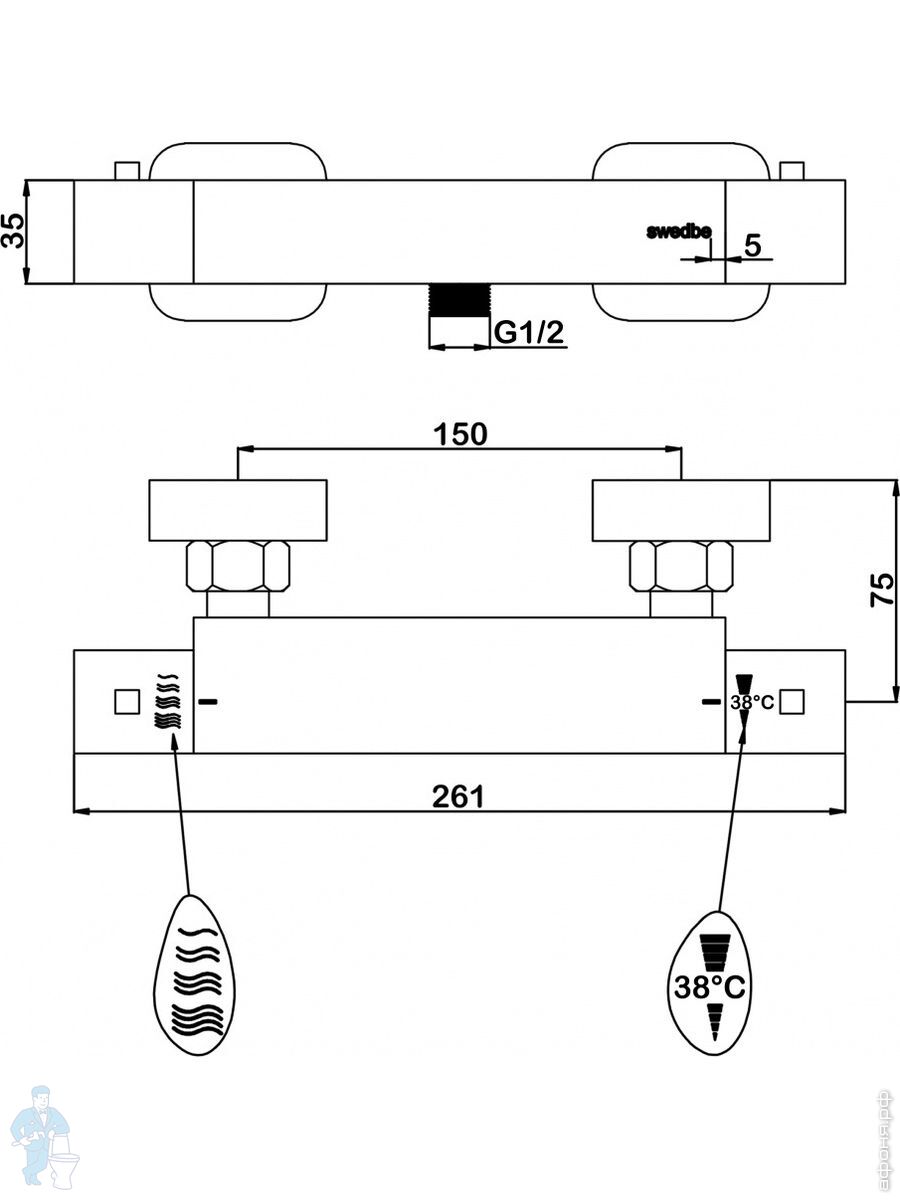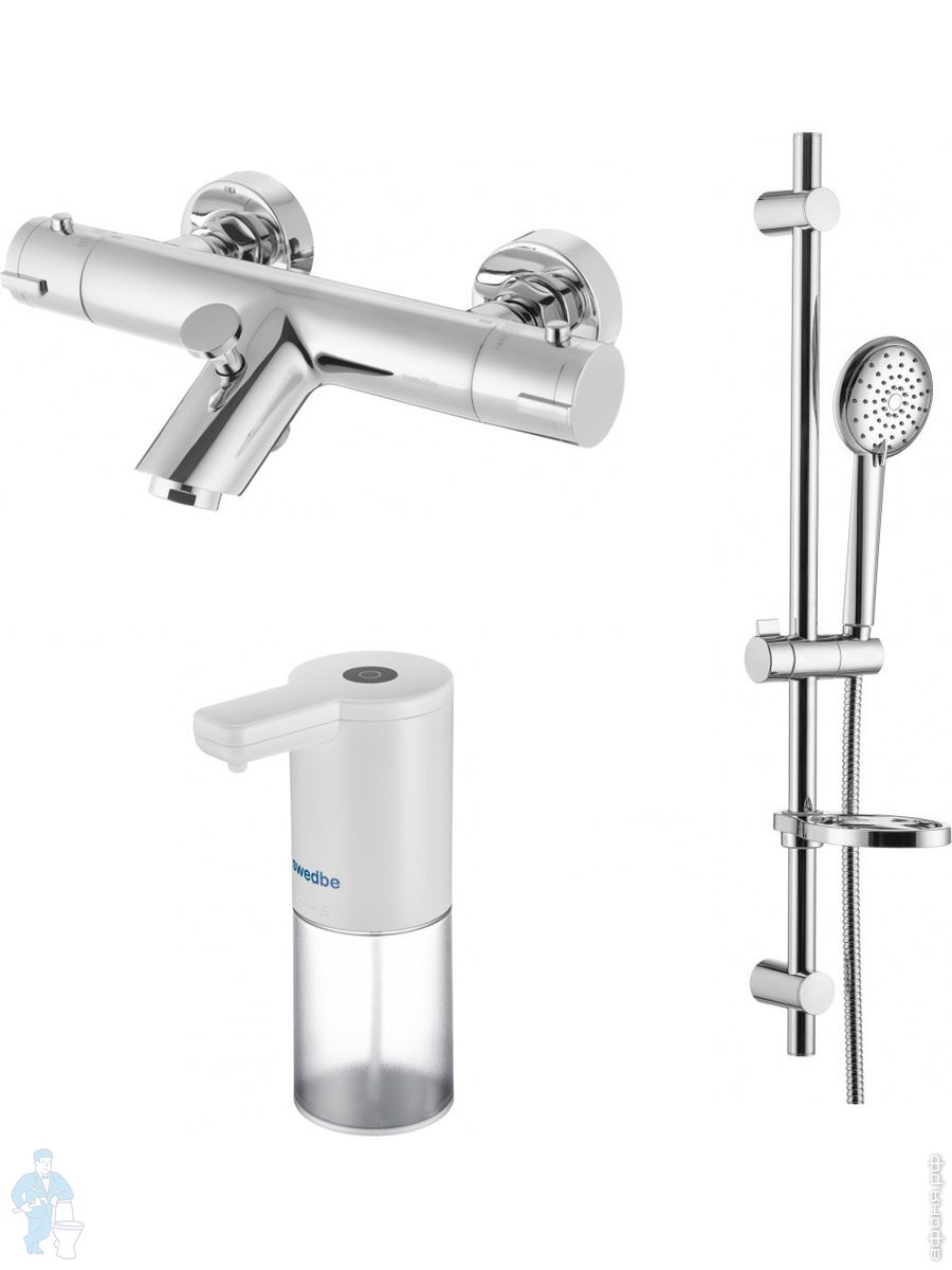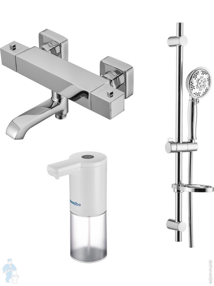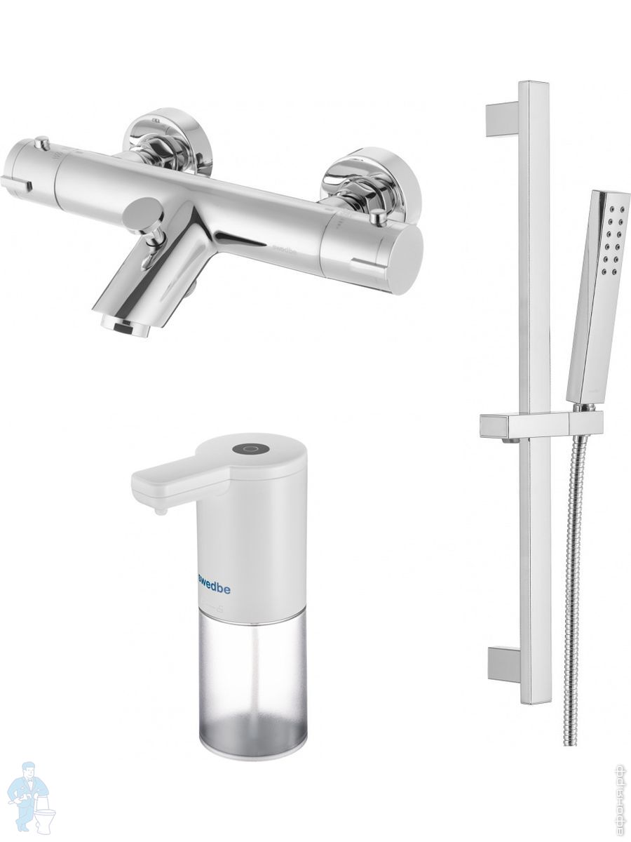 Смеситель для ванны Swedbe Mercury 9061 термостат+Душ.комплект Calypso 5086 1 реж.+Сенс.дозатор 0102Код: 256649