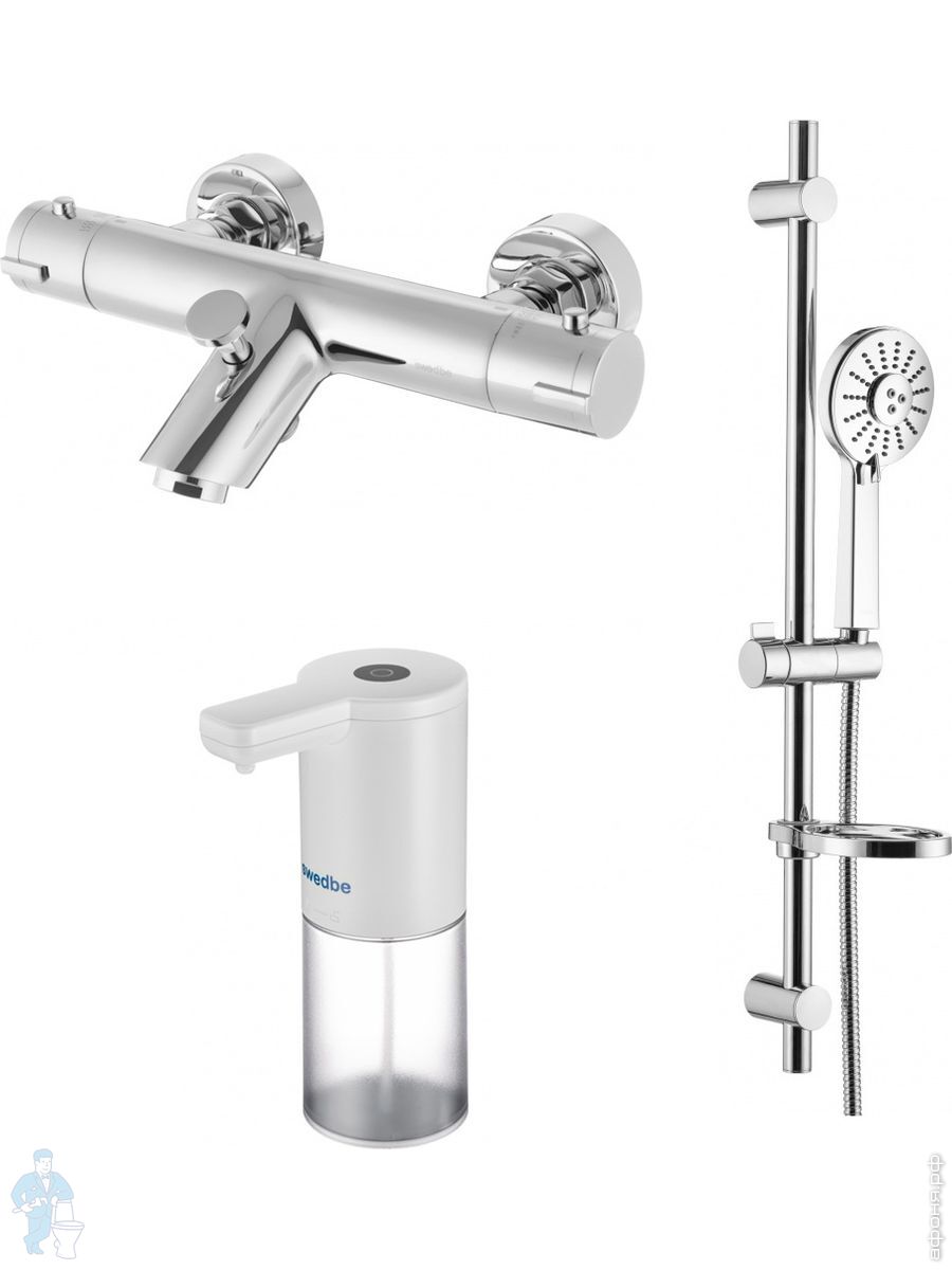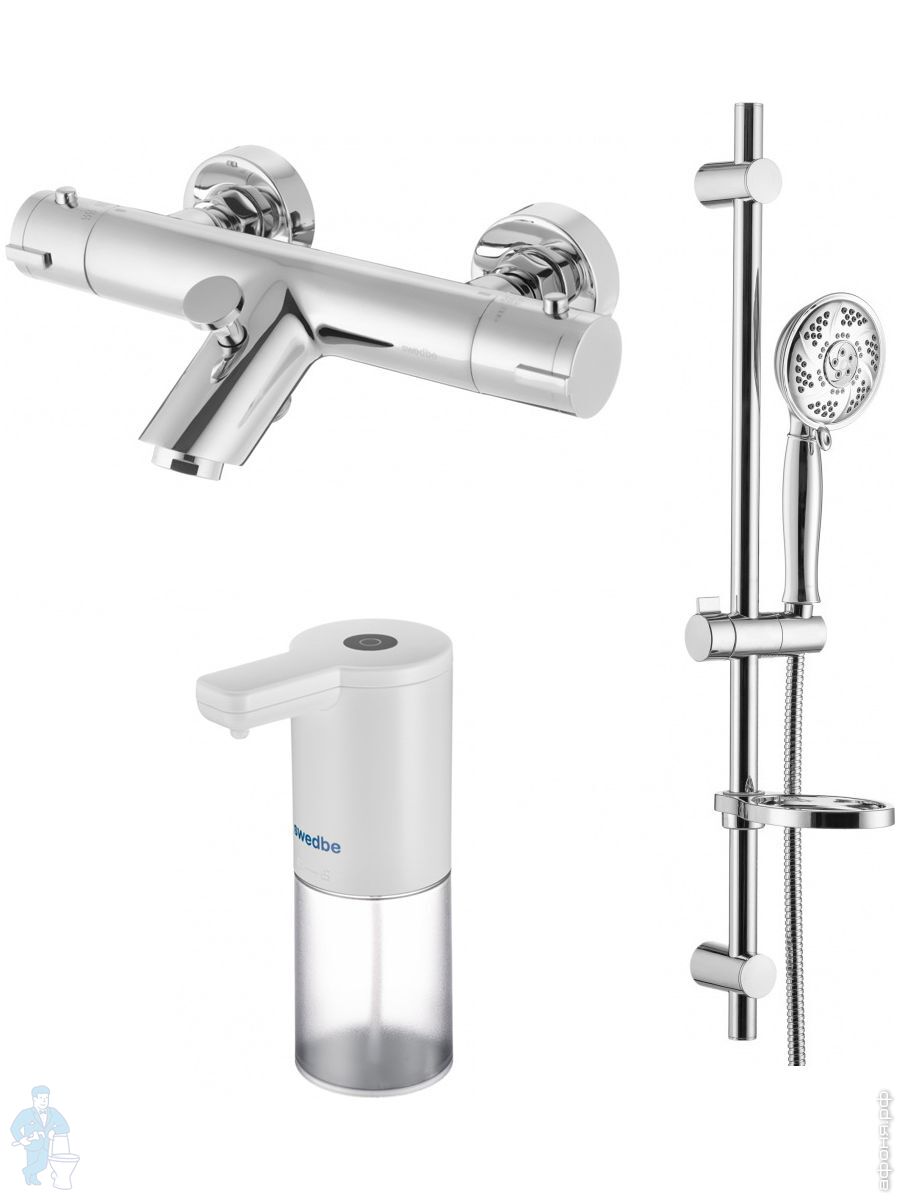 Смеситель для ванны Swedbe Mercury 9061 термостат+Душ.комплект Calypso 5081 3 реж.+Сенс.дозатор 0102Код: 256645
