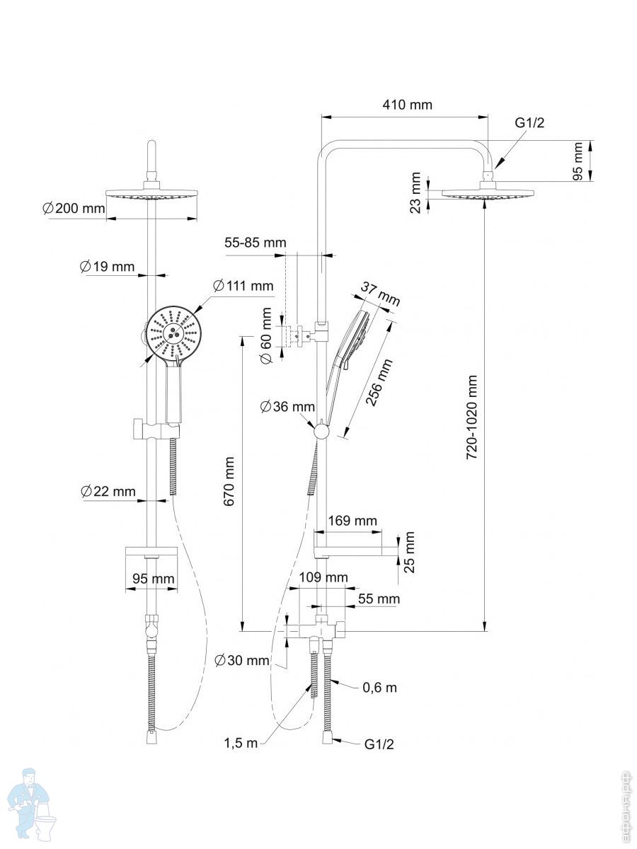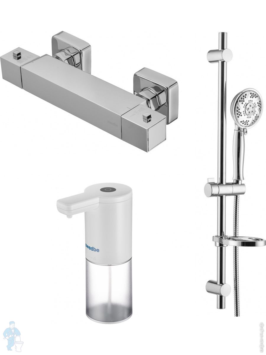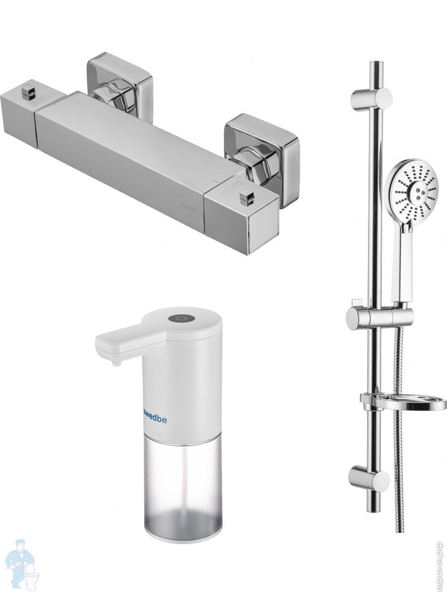 Смеситель для душа Swedbe Mercury 9052 термостат+Душ.комплект Calypso 5085 1реж.+Сенсор.дозатор 0102Код: 256629