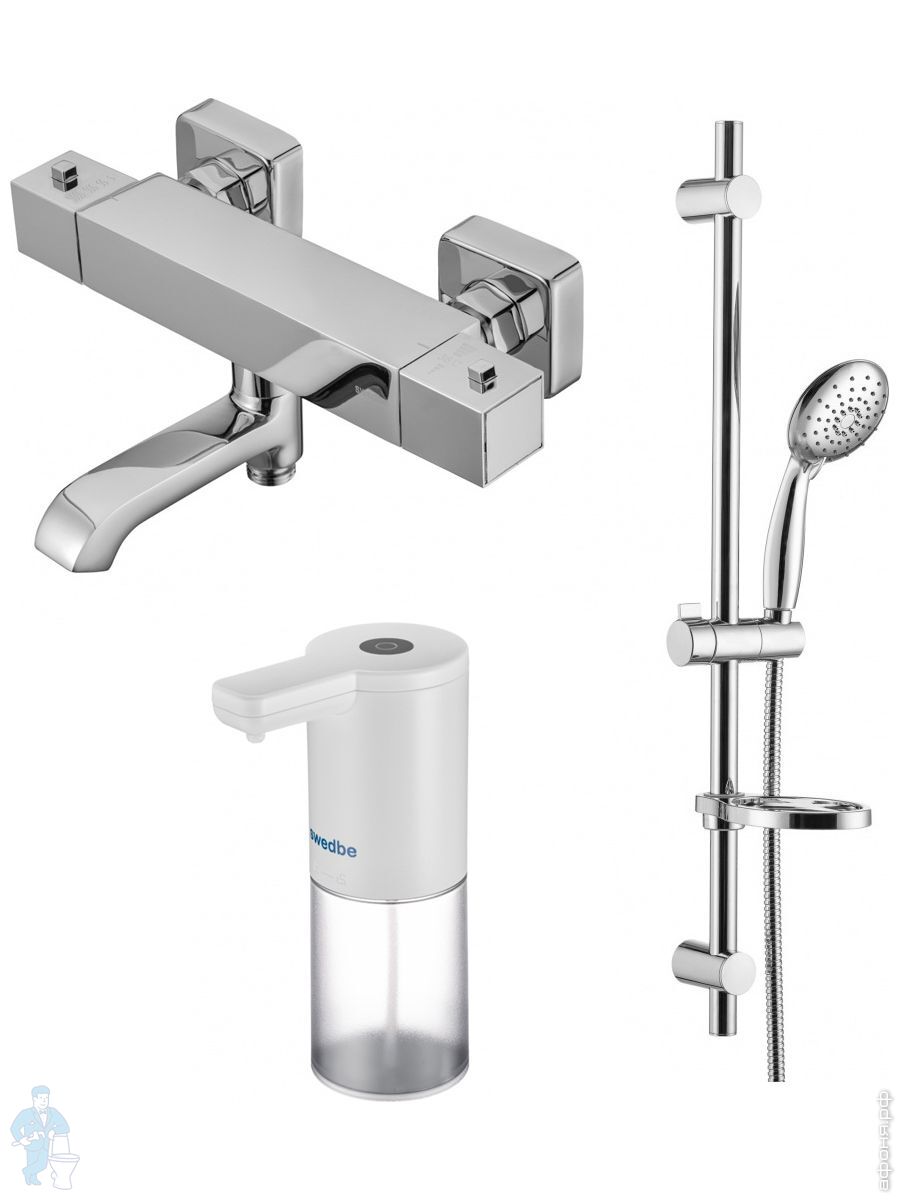 Смеситель для ванны Swedbe Mercury 9061 термостат+Душ.комплект Calypso 5085 1 реж.+Сенс.дозатор 0102Код: 256648