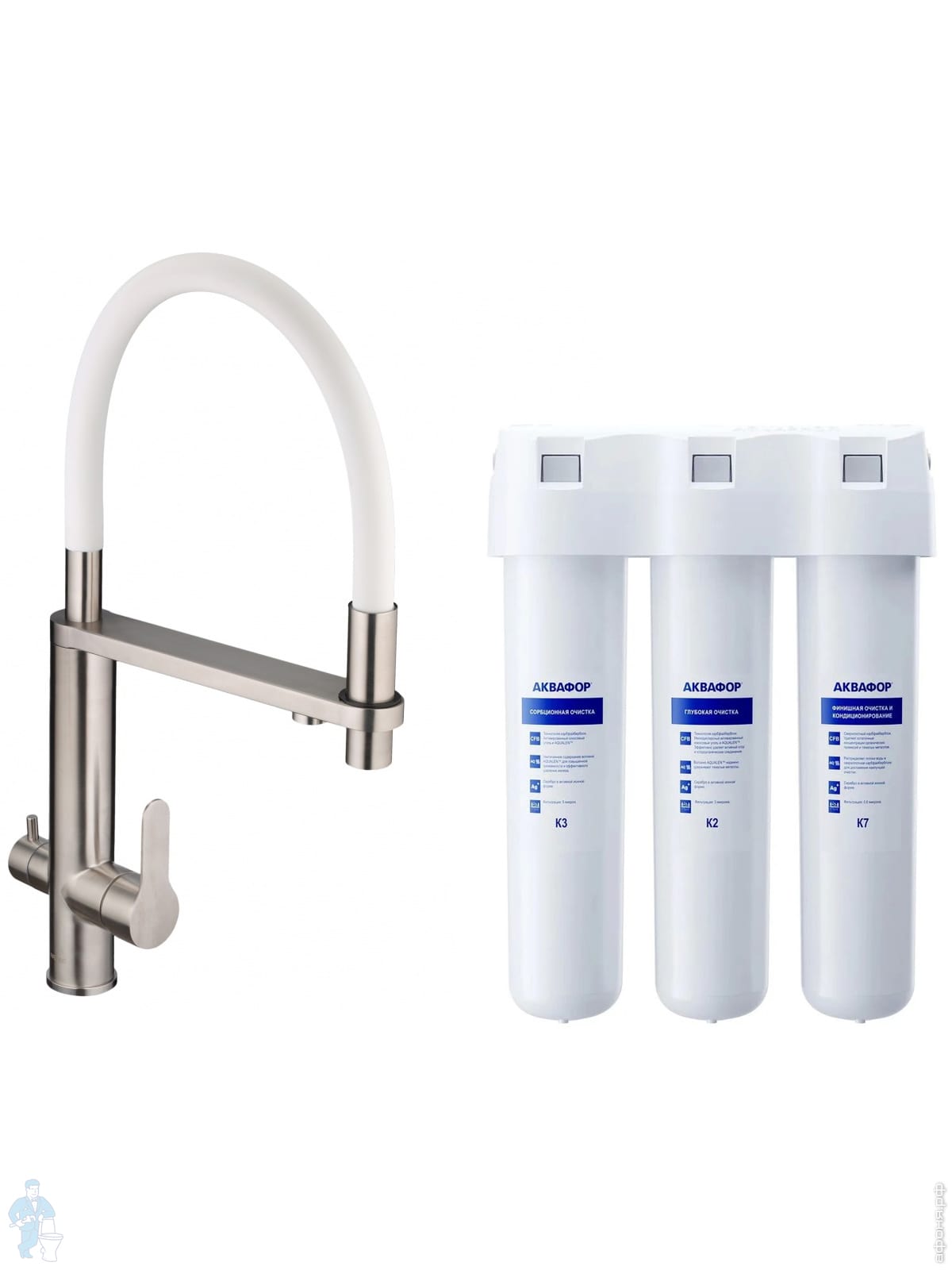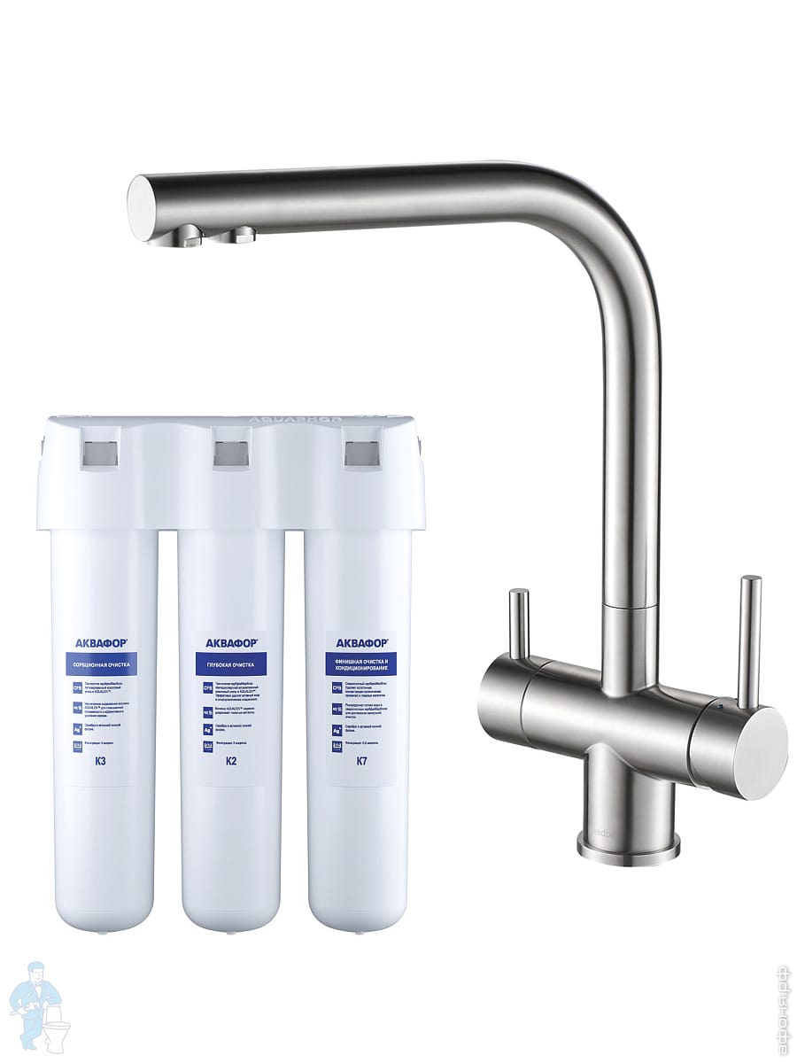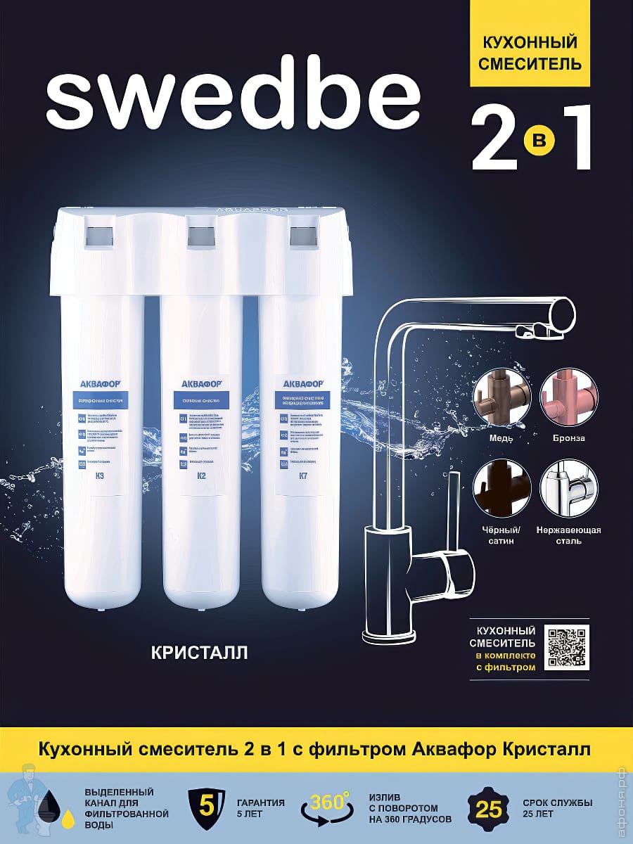 Смеситель для кухни Swedbe Selene Plus 8144K, нерж.сталь + Комплект фильтров Аквафор Кристалл K8144KКод: 369067