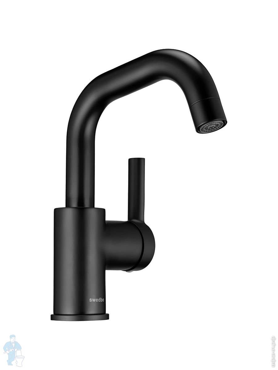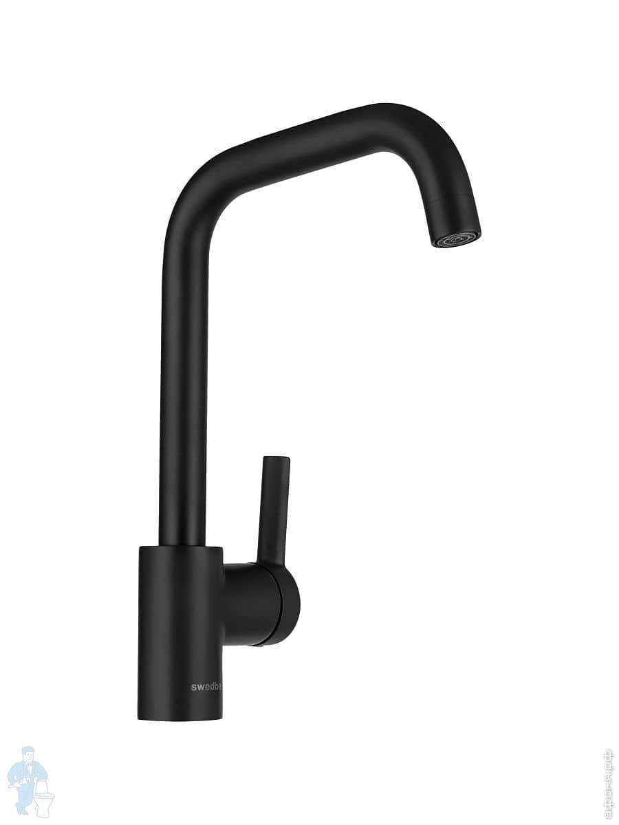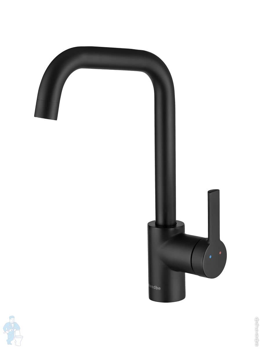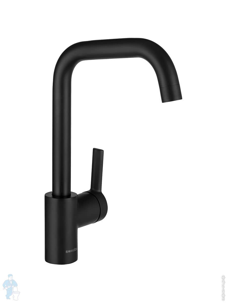 Смеситель для кухни Swedbe Diana 1041B однозахватный, высокий поворотный излив 230мм, черный матовыйКод: 234950