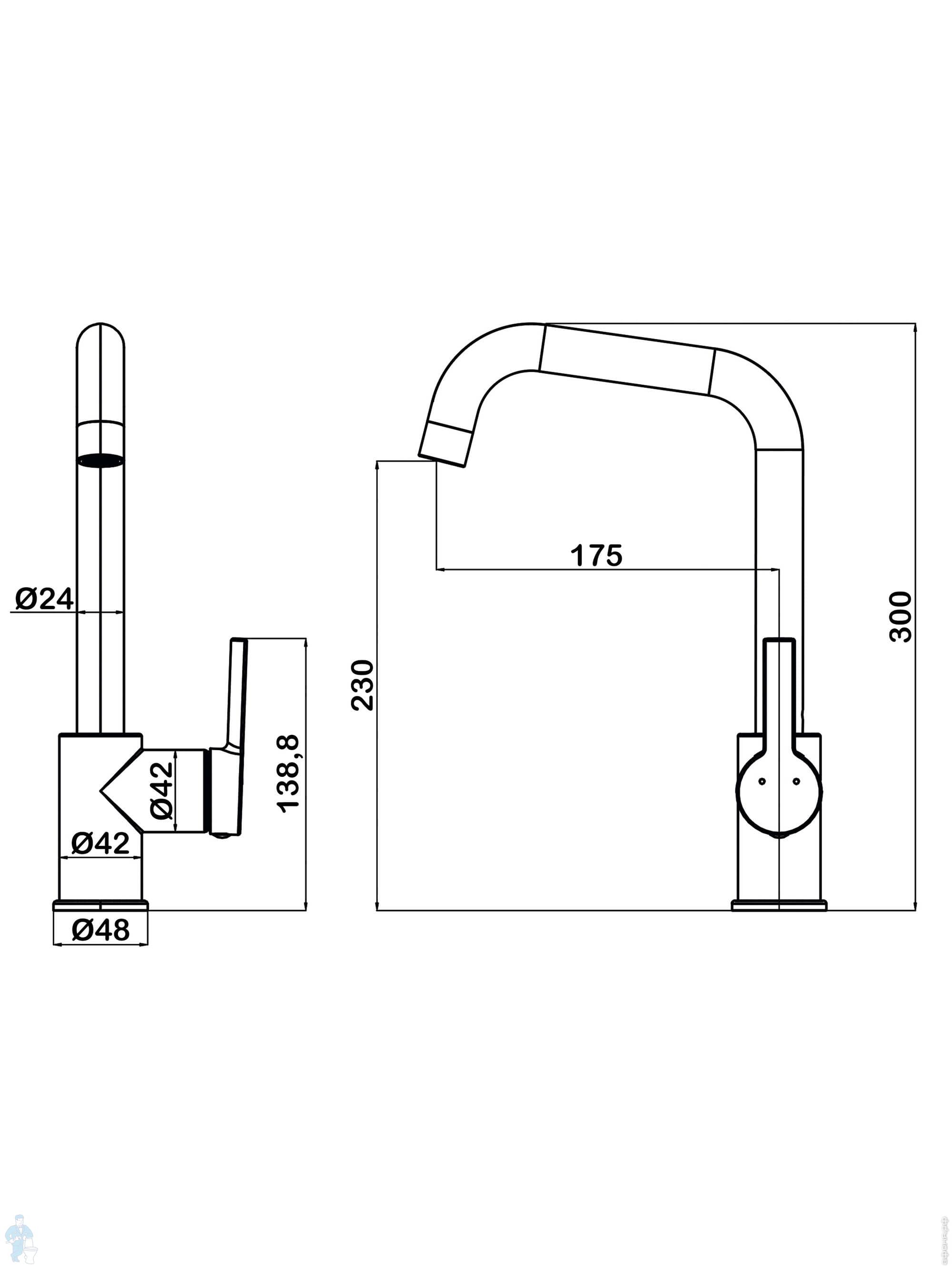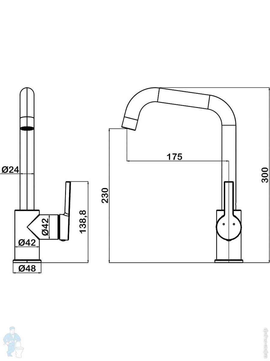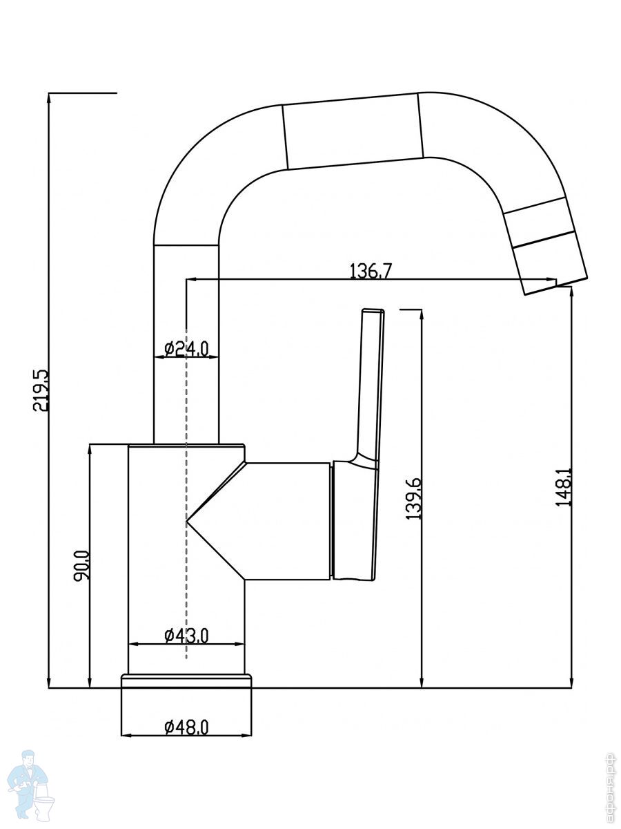 Смеситель для кухни Swedbe Diana 1041B однозахватный, высокий поворотный излив 230мм, черный матовыйКод: 234950