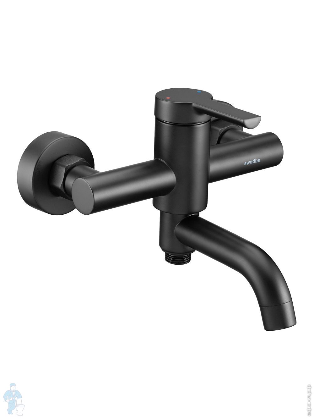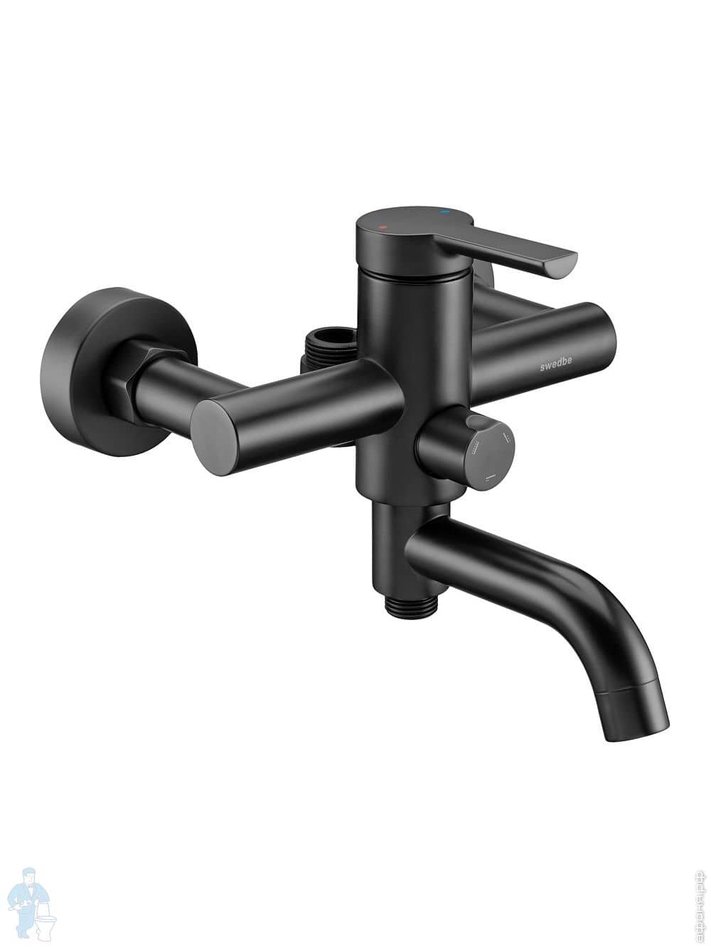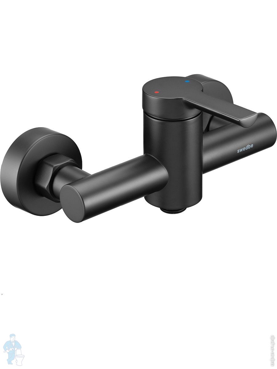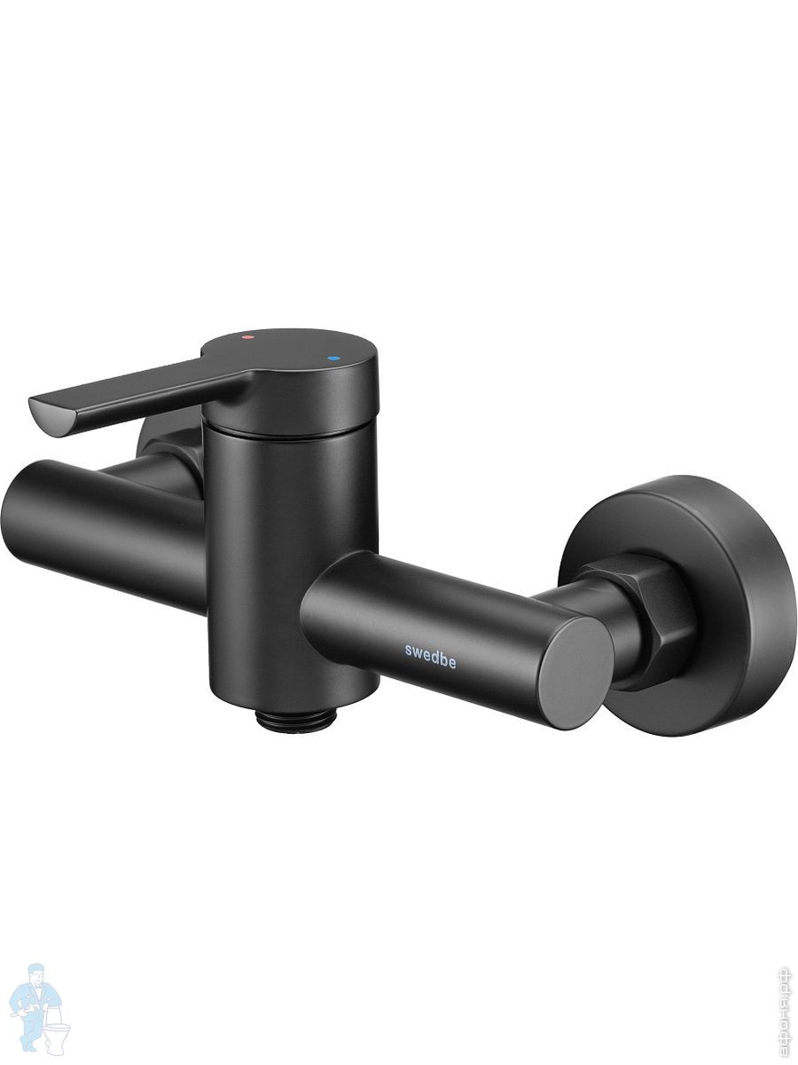 Смеситель для ванны/душа Swedbe Diana 1035В настенный, однорыч., поворот. излив, дивертор, черн. матКод: 209505