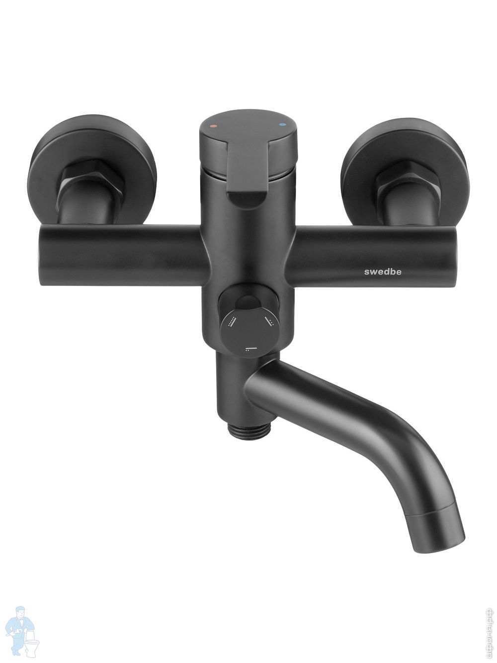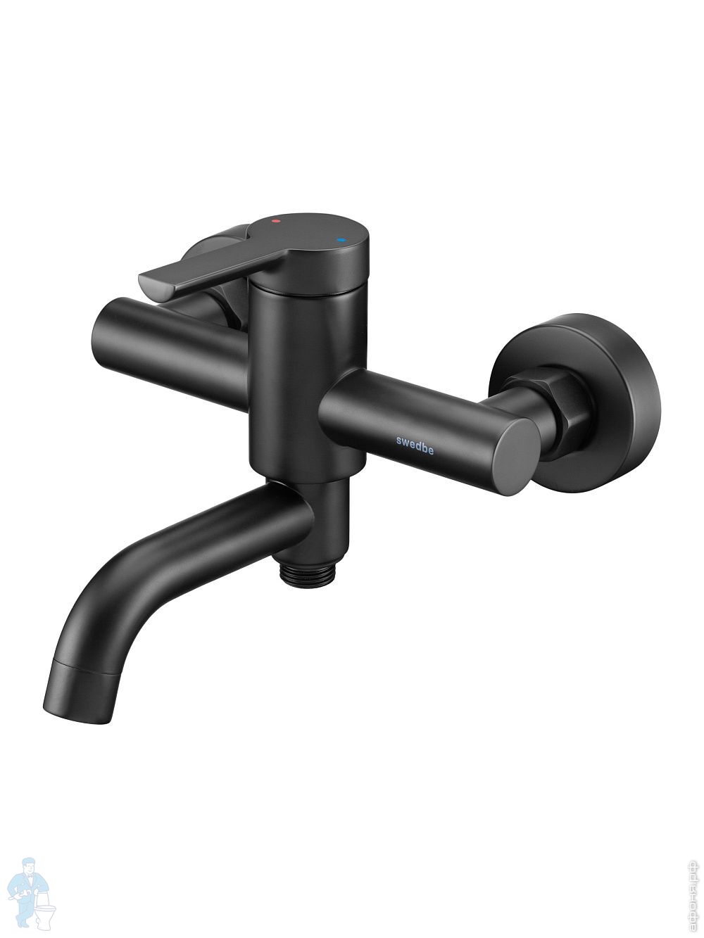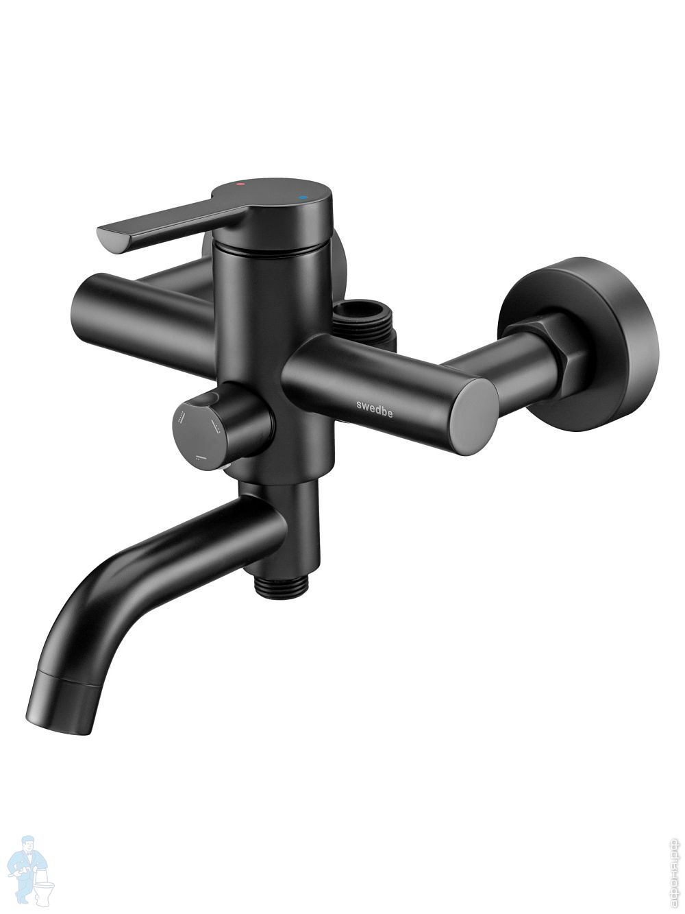 Смеситель для ванны/душа Swedbe Diana 1035В настенный, однорыч., поворот. излив, дивертор, черн. матКод: 209505