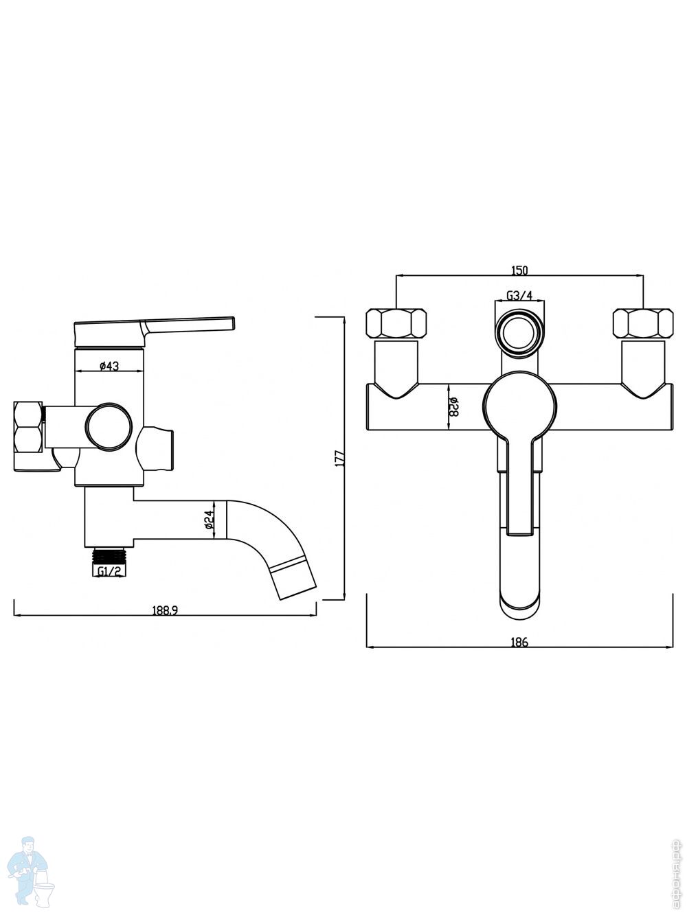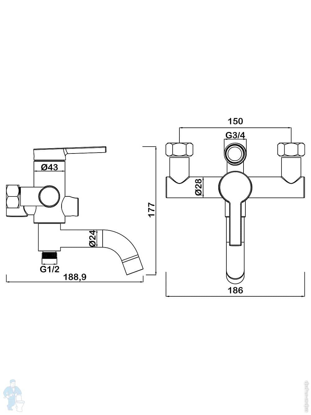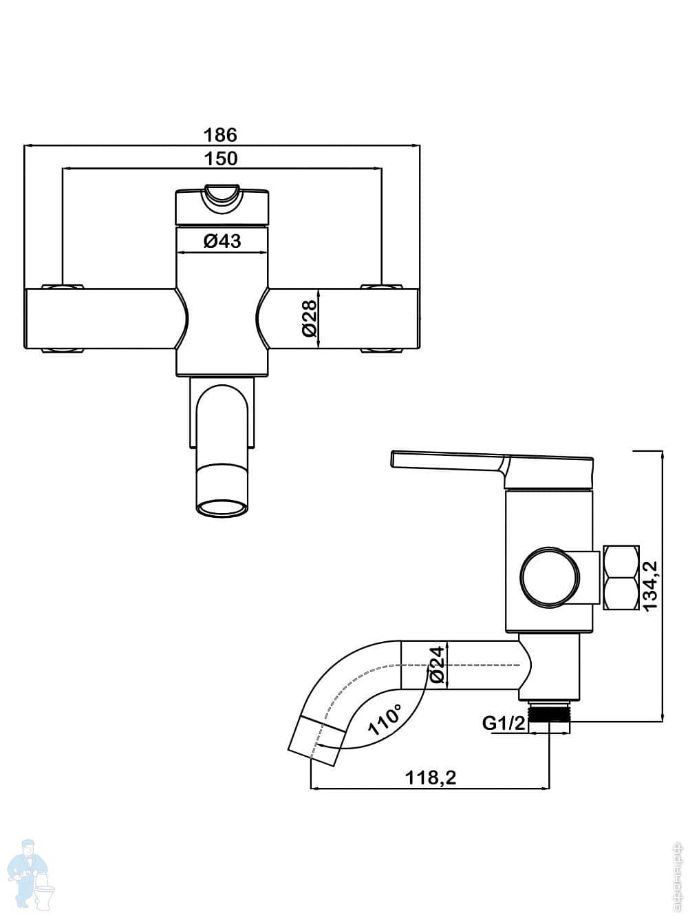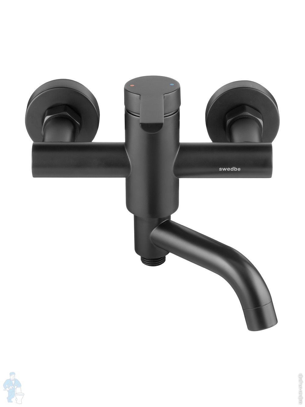 Смеситель для ванны/душа Swedbe Diana 1035В настенный, однорыч., поворот. излив, дивертор, черн. матКод: 209505