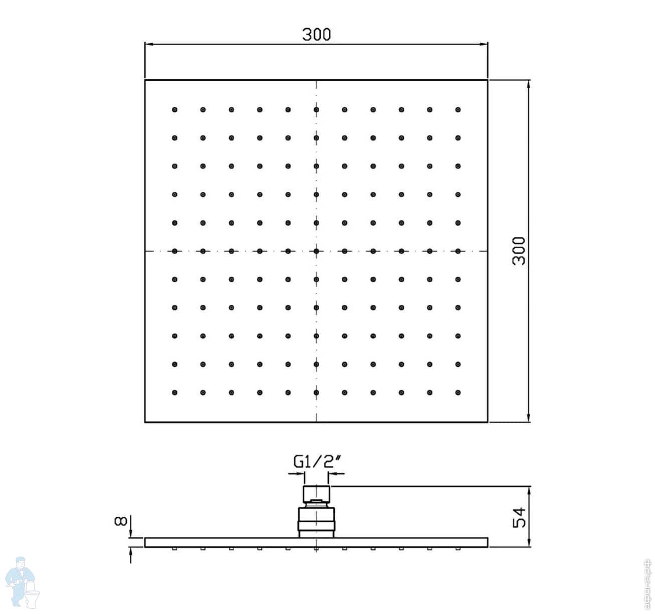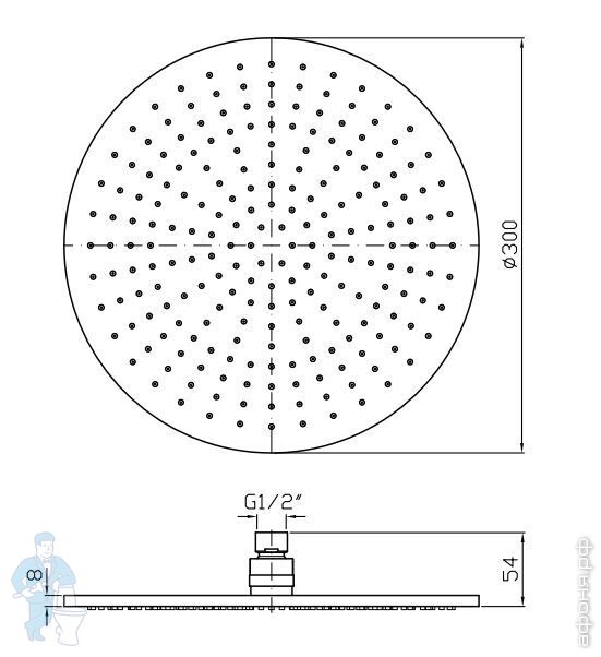 Верхний душ Zucchetti 300мм, без кронштейна, система защиты от накипи, цвет:черный матовый Z94266.N6Код: 207622