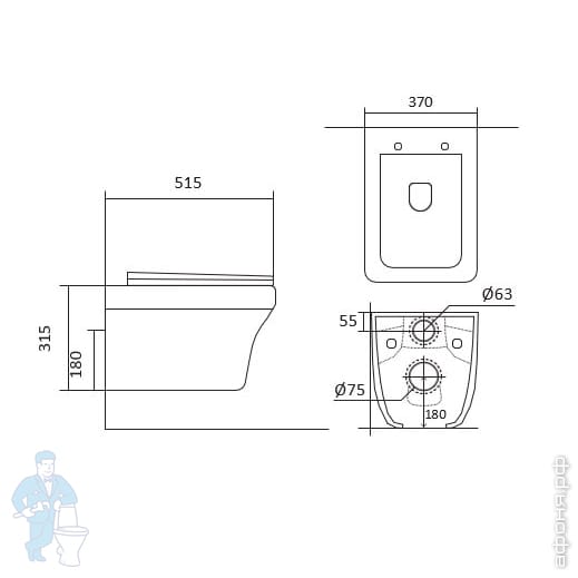 Унитаз подвесной Акватек АМАДЕО 490х365х320 безободковый,с сиденьем,горизонт. выпуск,белый AQ1180-00Код: 308090