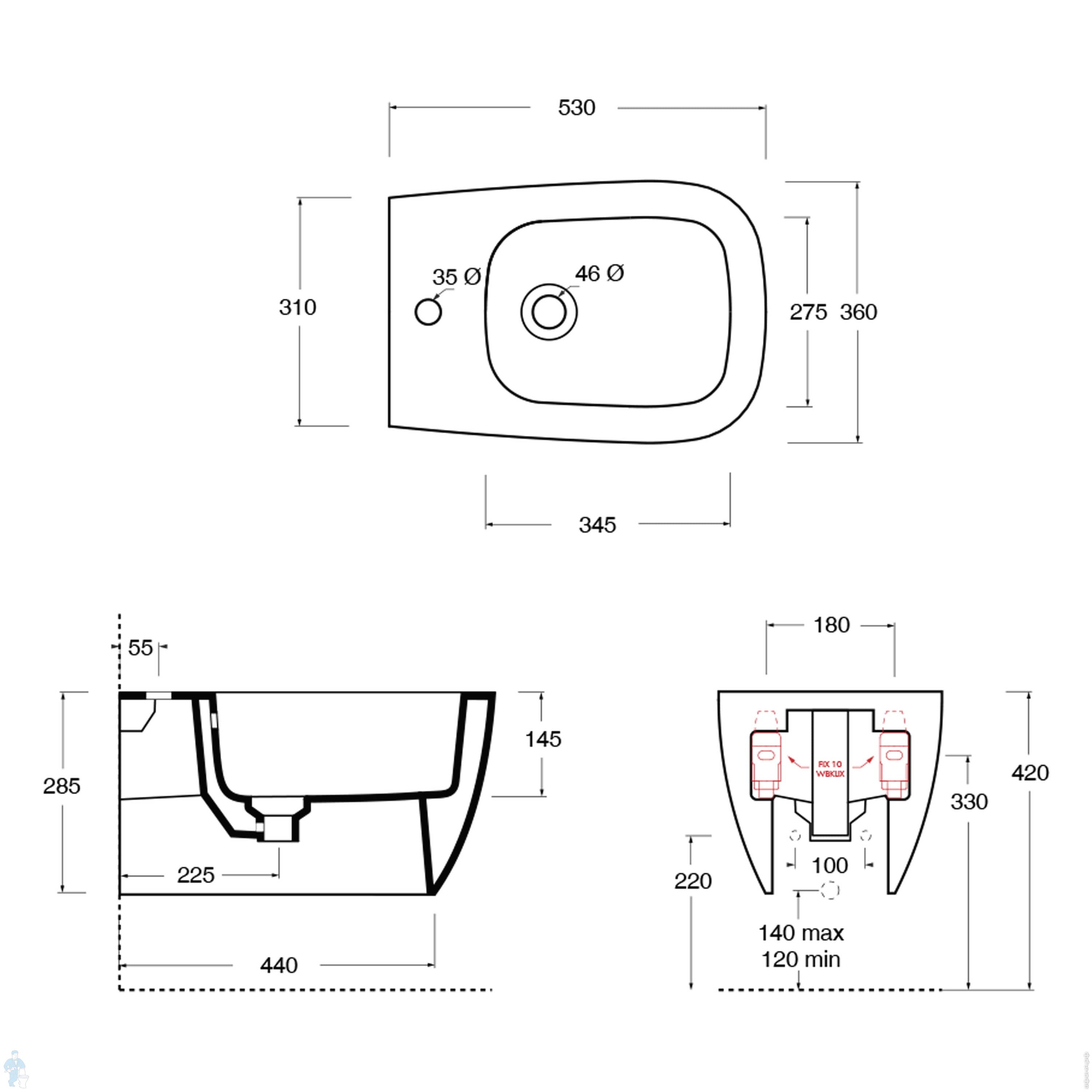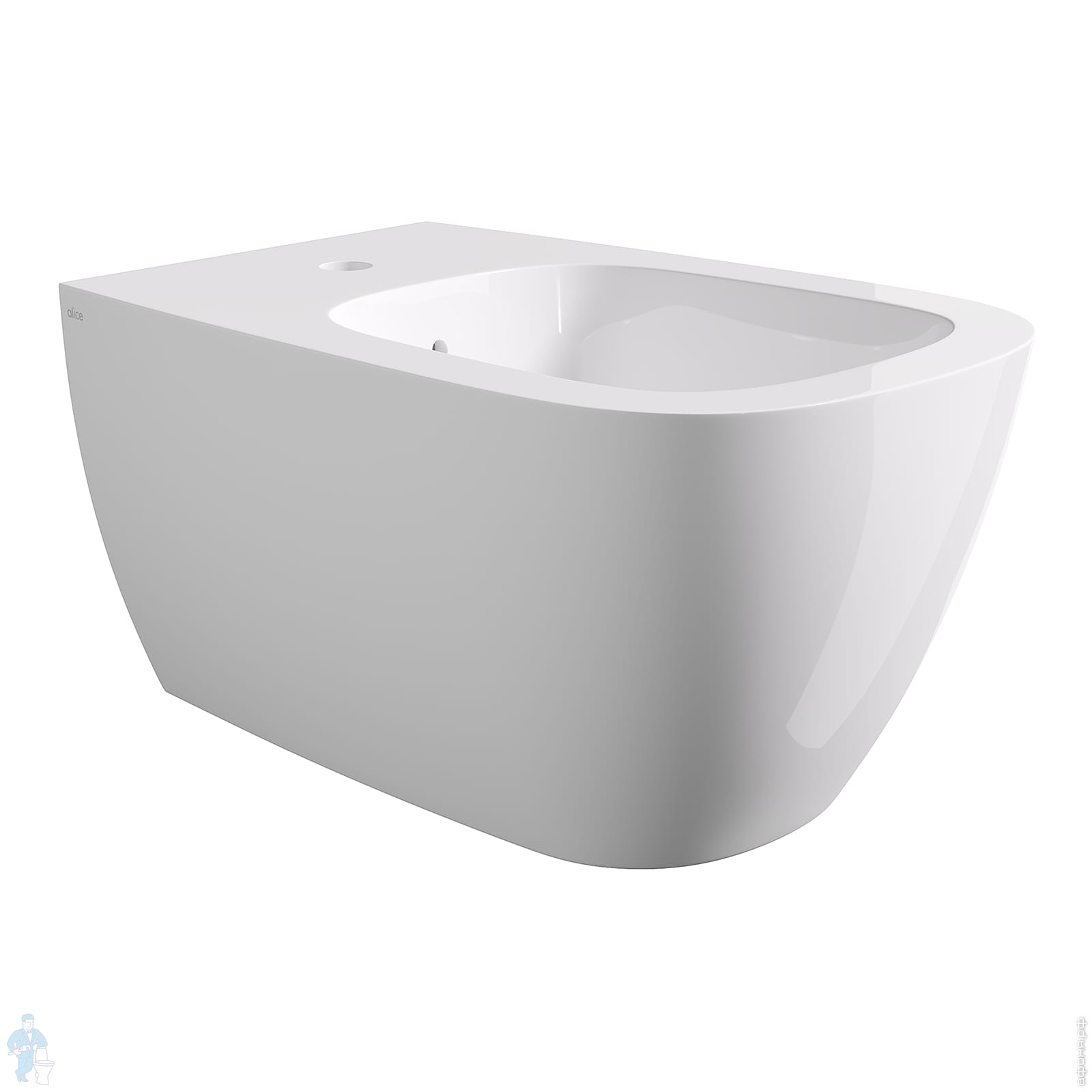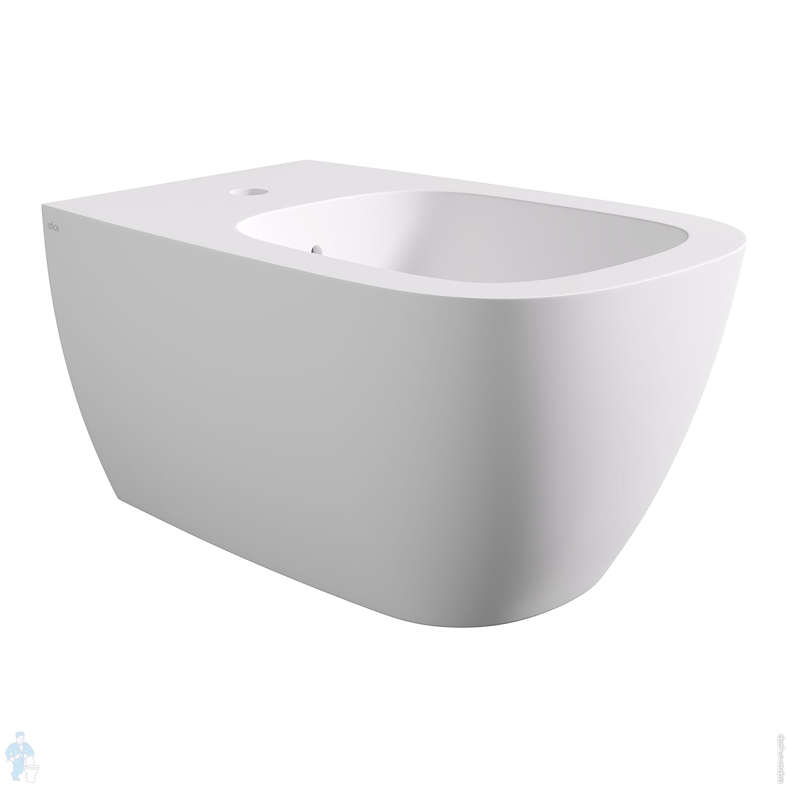 Биде подвесное Alice Wunder 530х360х285 Aliglaze+ отв. под смеситель, белый мат 45010109+FIX10WBKLIXКод: 309911