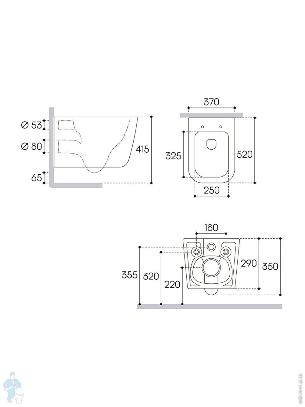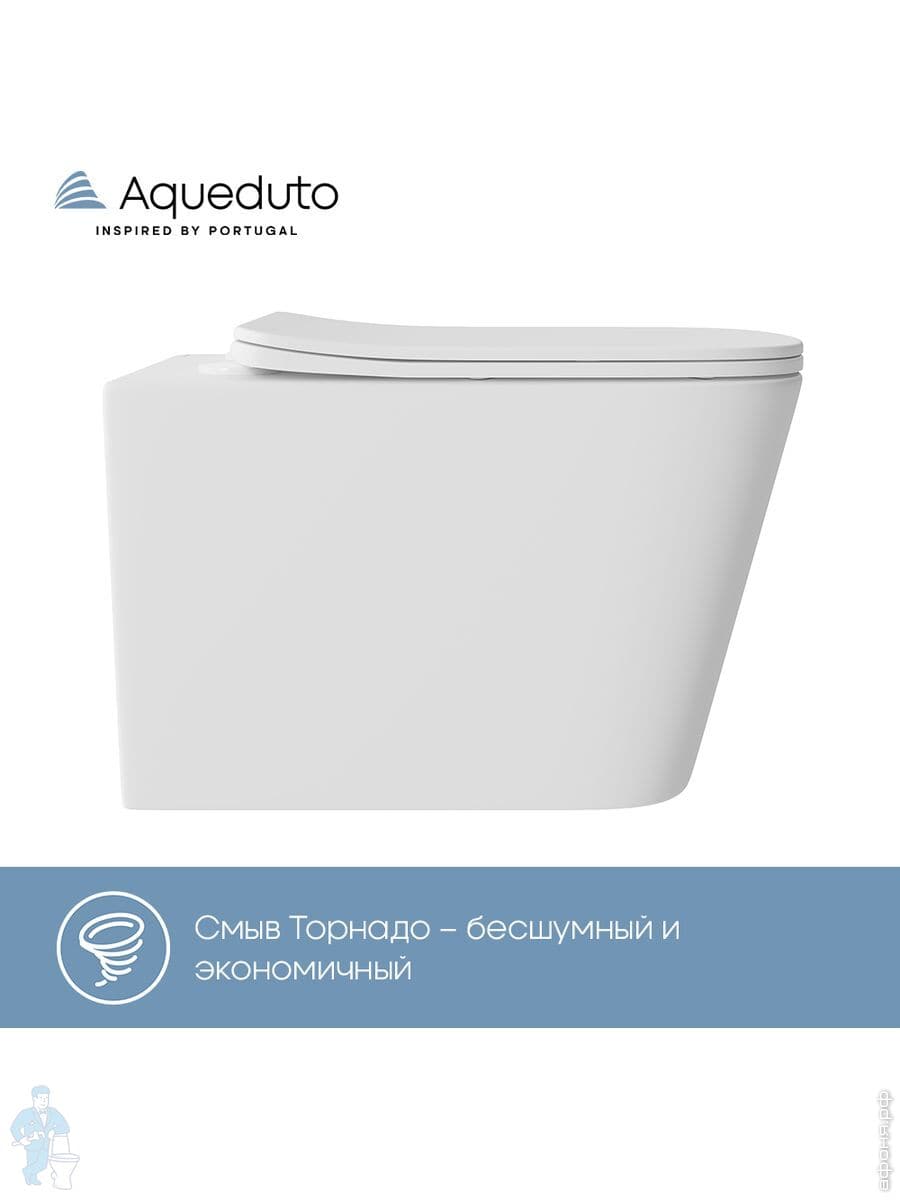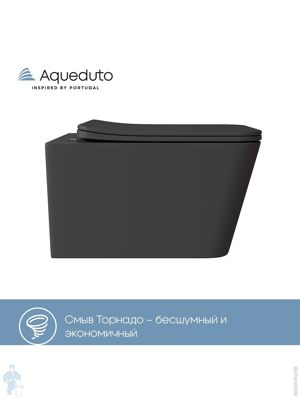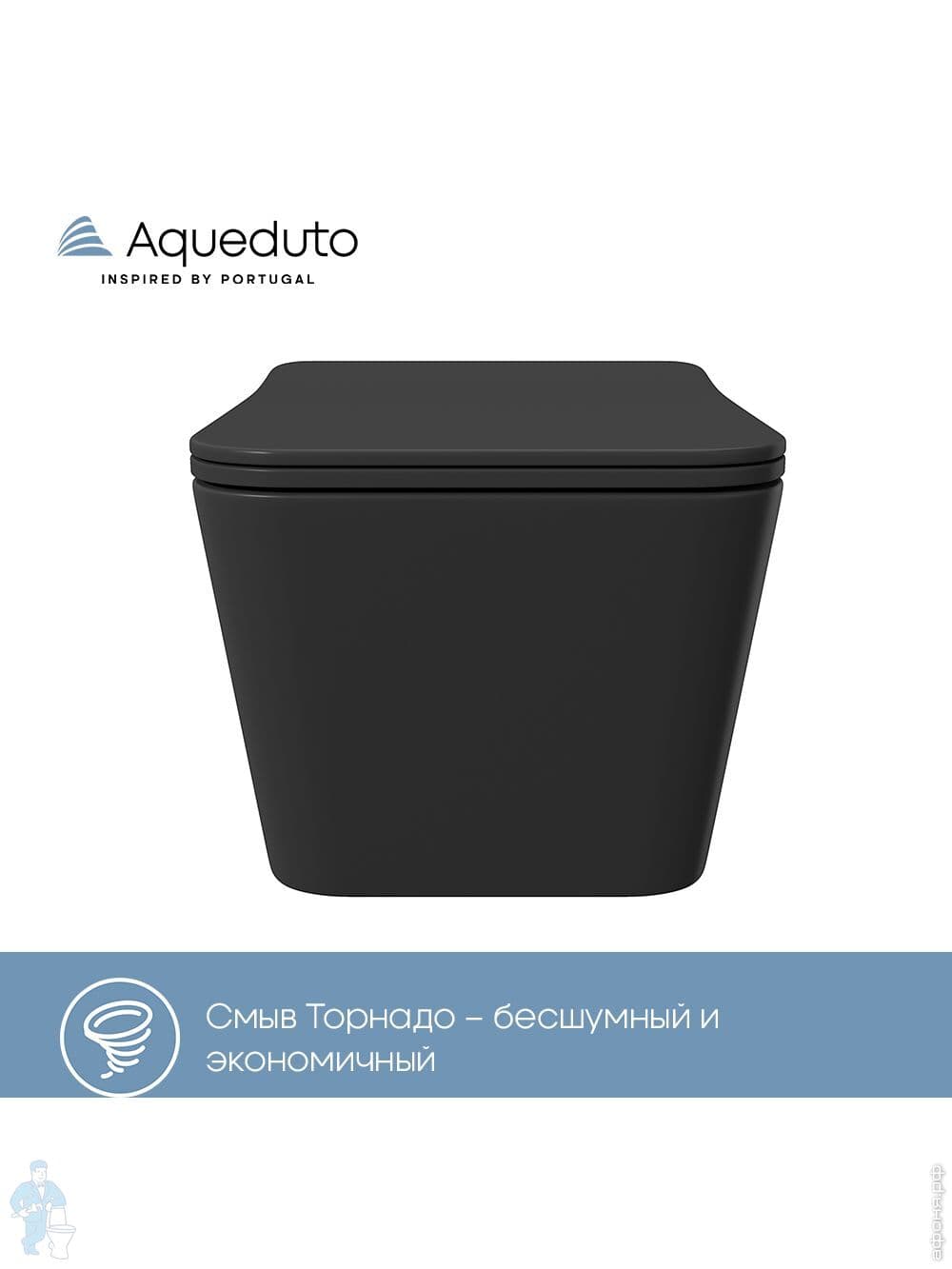 Унитаз подвесной Aqueduto Macio Tornado 370х520х290, безобод, сиденье с микролифт, черн мат MACT2140Код: 368595