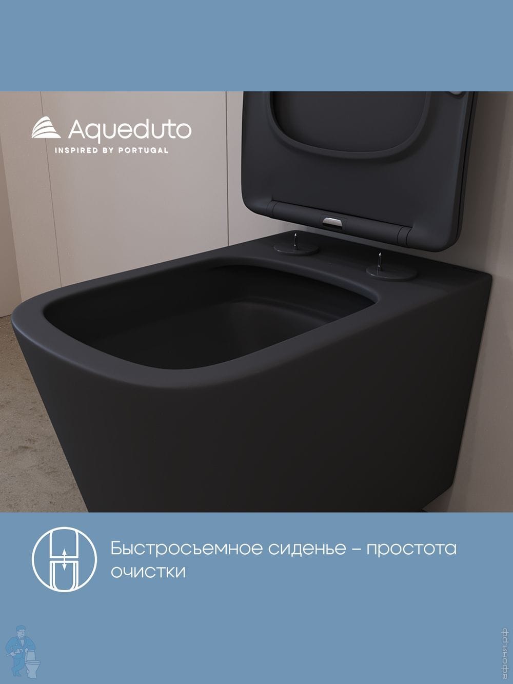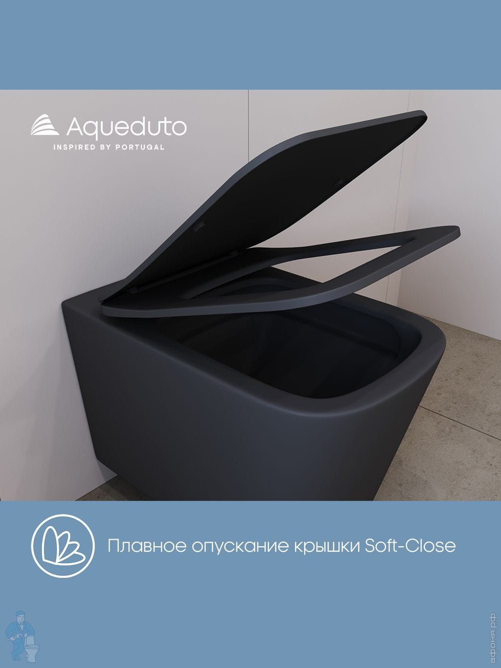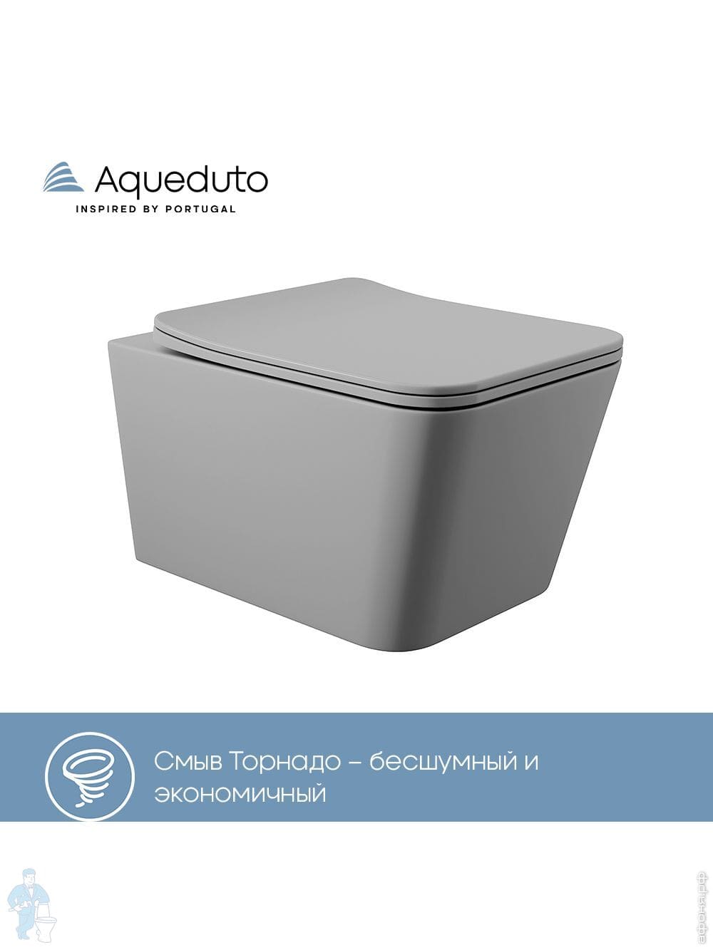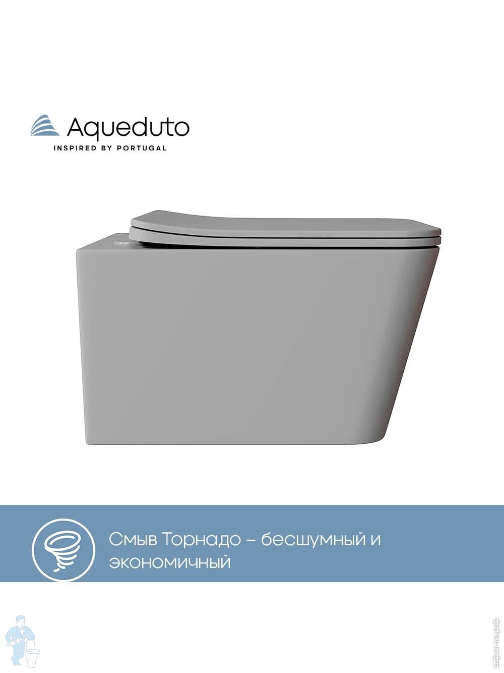 Унитаз подвесной Aqueduto Macio Tornado 370х520х290 безобод, сиденье с микролифт, серый мат MACT2130Код: 368596