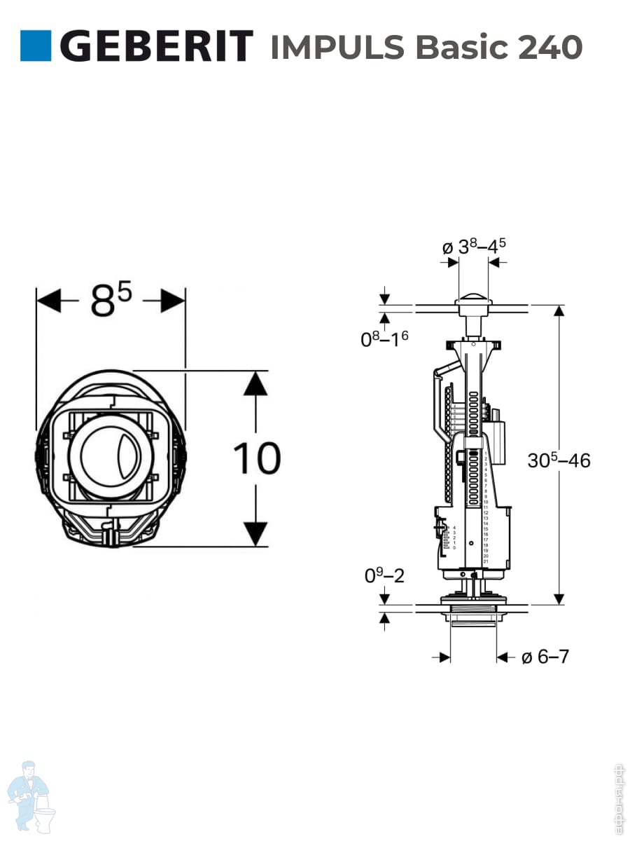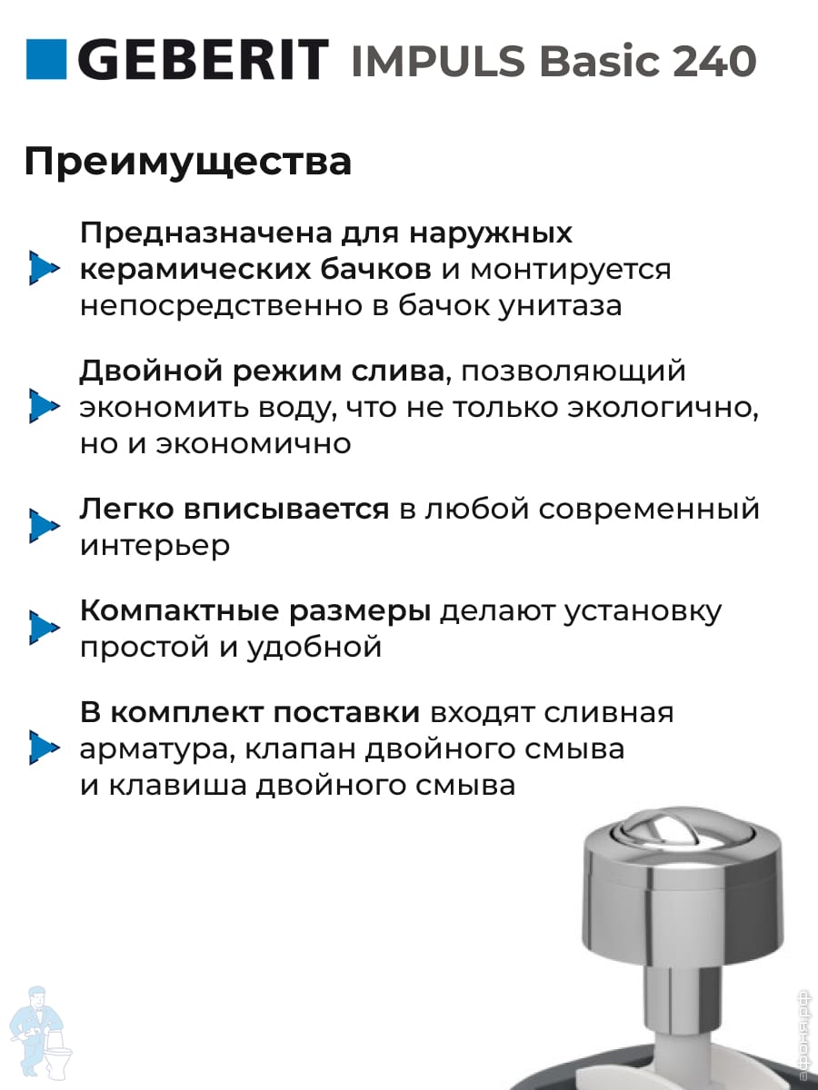 Впускной клапан Geberit Impuls 360 3/8 подвод воды снизу,для наруж. бачка, пластиковое, 281.207.00.1Код: 71838