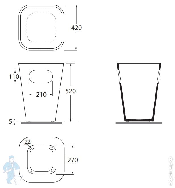 Умывальник Azzurra Tandem (430х440х330) для установки с корзиной, отв. под смес., белая TALP04443T0MКод: 281793