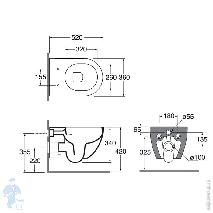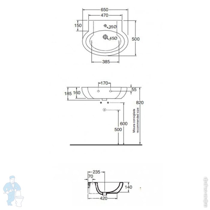 Умывальник Azzurra Comoda (550х470х160) подвесной, отв. под смеситель, перелив, белый CMLS05547T0MBIКод: 281658