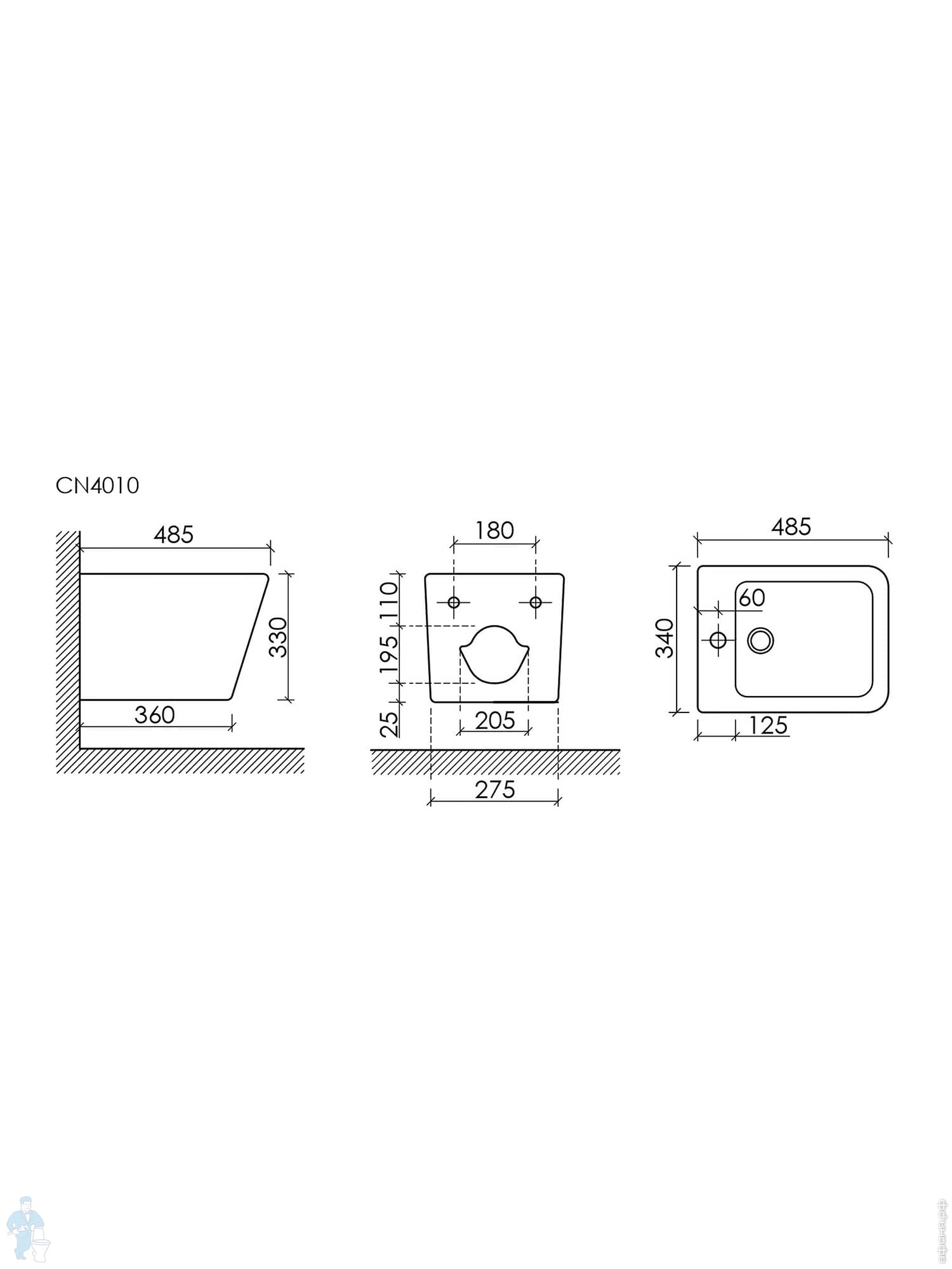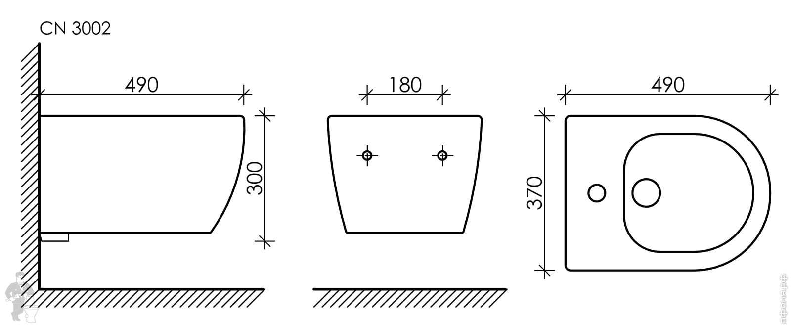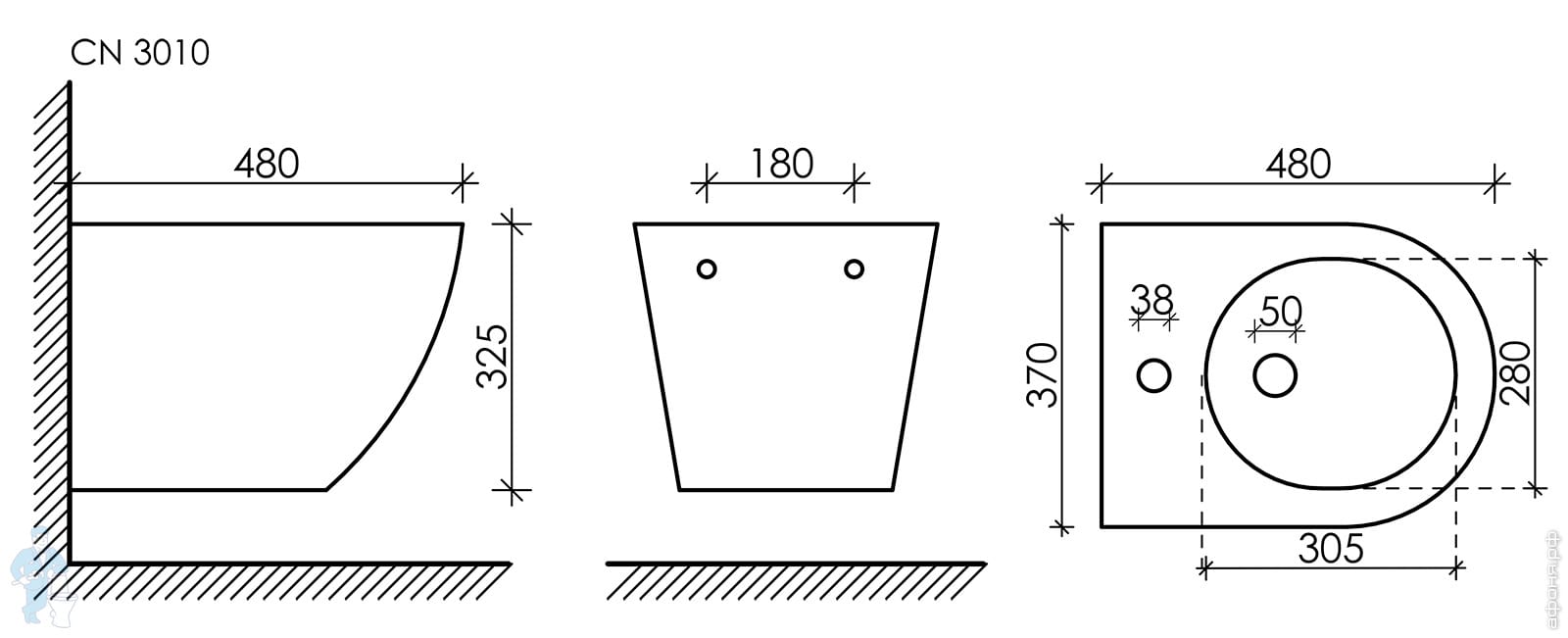 Биде подвесное Ceramicanova Uno 490х360х325 отв. под смеситель, крепеж, без д/к,черный мат.CN11002MBКод: 319876