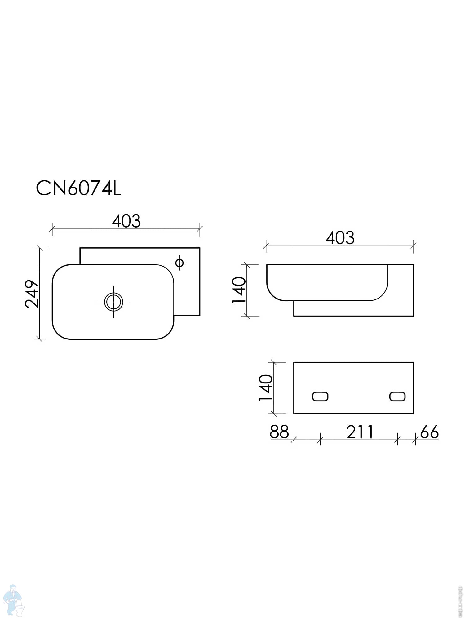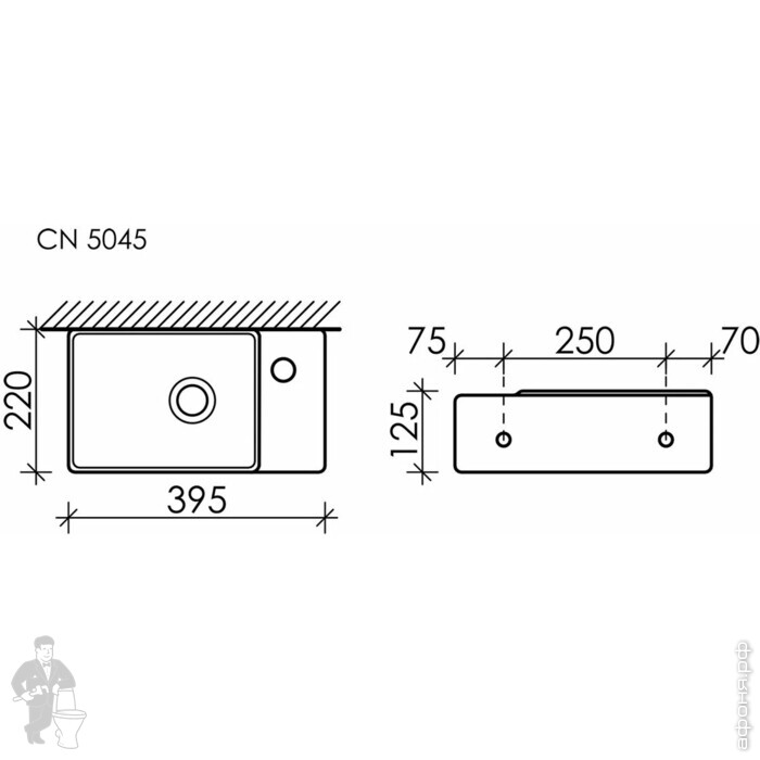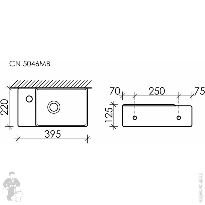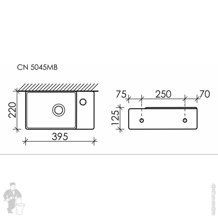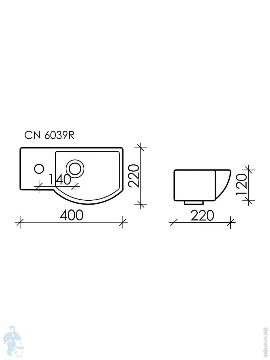 Раковина подвесная Ceramicanova Element 407х217х100 чаша слева, отв. под смесит.,капуч. матCN6051LMCКод: 319862