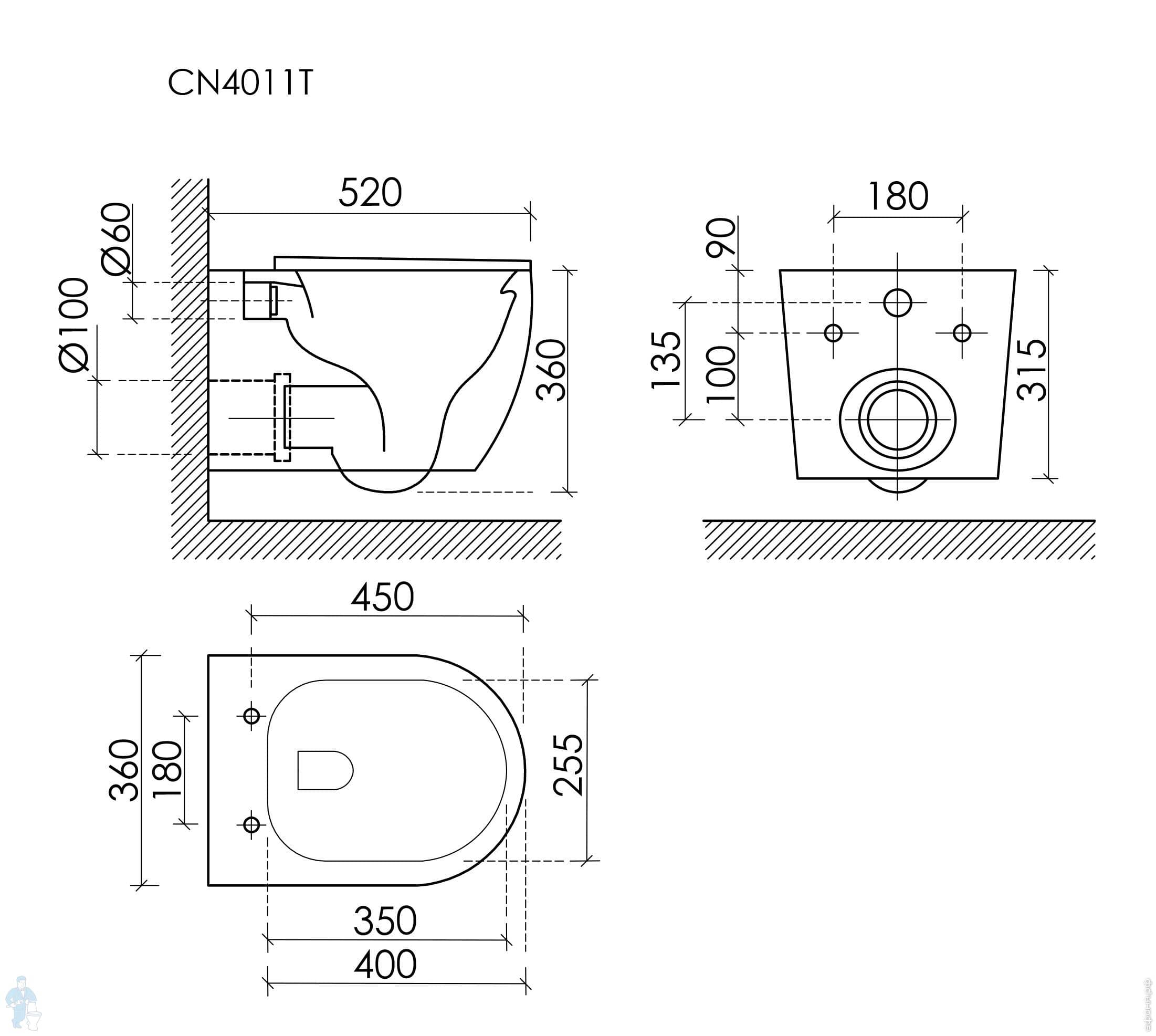 Унитаз подвесной Ceramicanova Uno 360х490х360 с сиденьем, безободковый, смыв Tornado, белый CN11001TКод: 351619