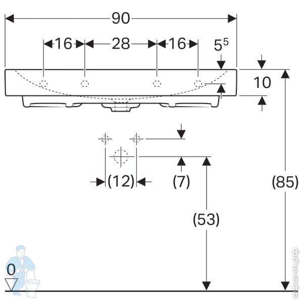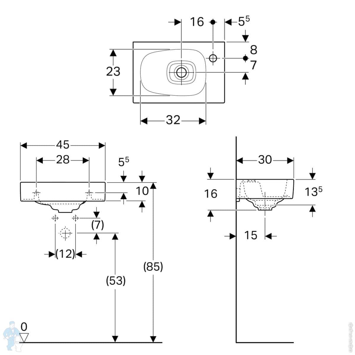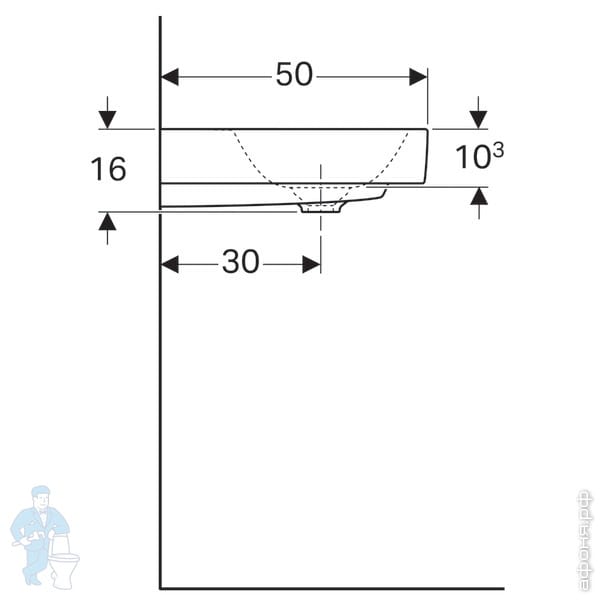 Раковина Geberit Citterio (450х300х160) KeraTect отв.под смеситель справа, без перелива 500.541.01.1Код: 148973