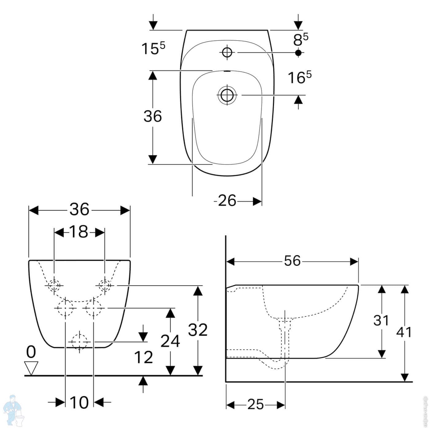 Биде подвесное Geberit Citterio (360х560х355) KeraTect отверстие под смеситель, перелив 500.539.01.1Код: 148971