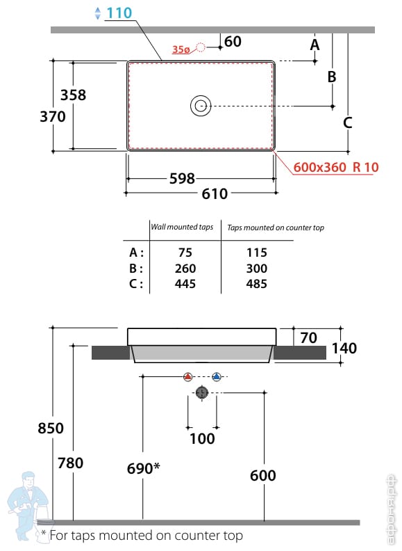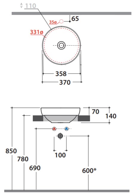 Раковина-чаша Globo T-Edge B6T37BI 370х160мм, накладная, без перелива, без отв. под смеситель, белаяКод: 159900