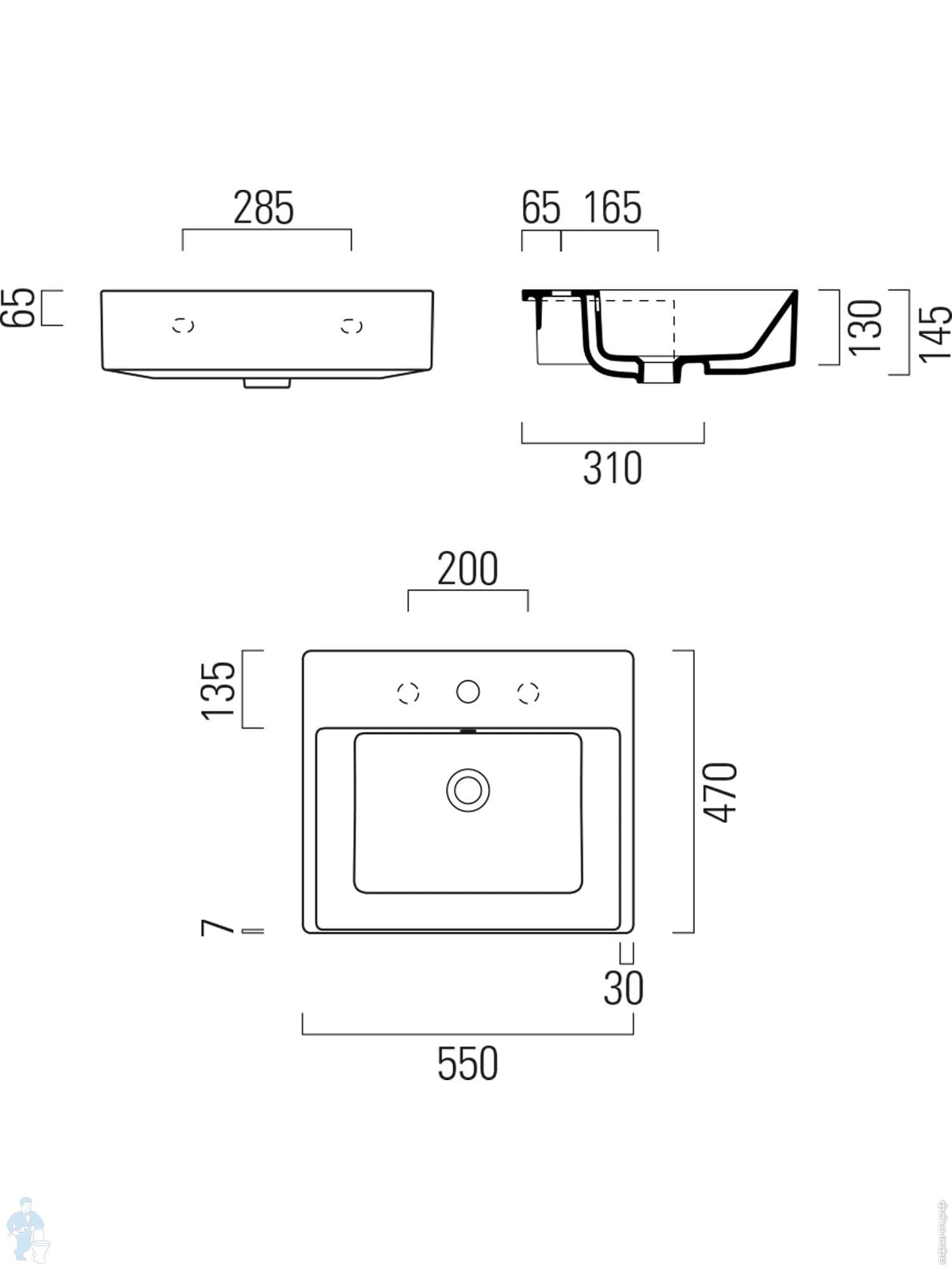 Раковина накладная/подвесная GSI Kube X 500х250х120 с креплением и отв. под смеситель,белый 9486F111Код: 334738