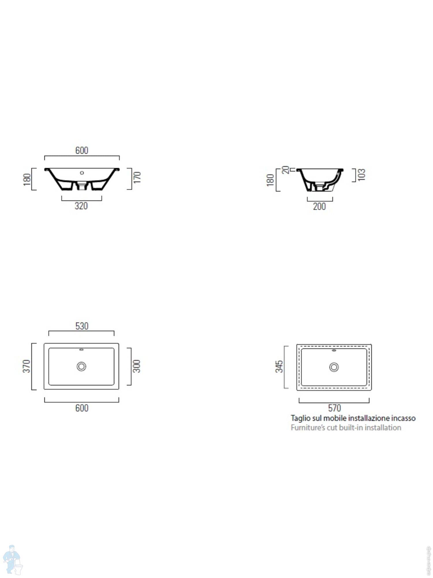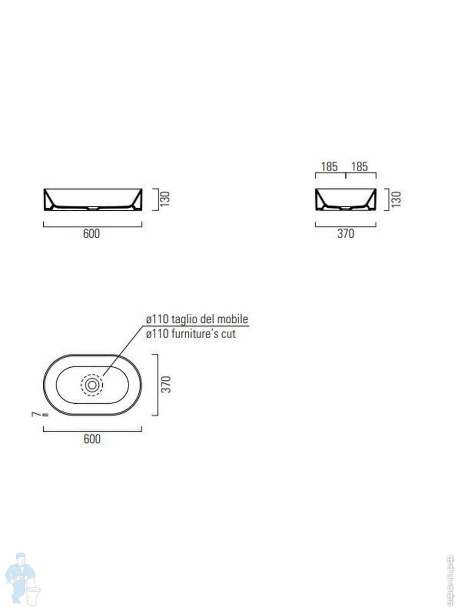 Раковина накладная GSI Kube X 600х370х130 без отв. под смеситель,с дон/кл.,белый глянцевый 9458PVC11Код: 334736