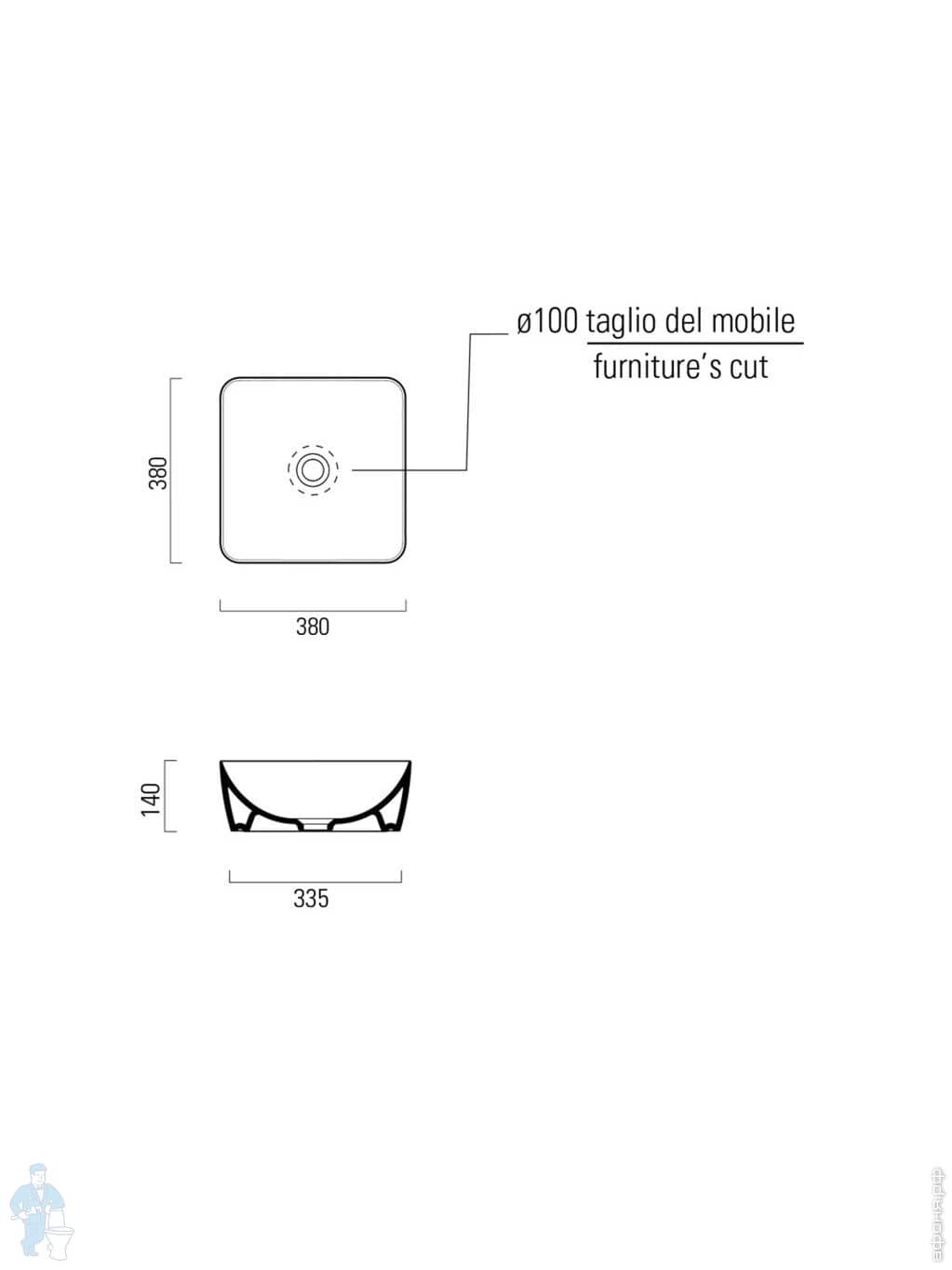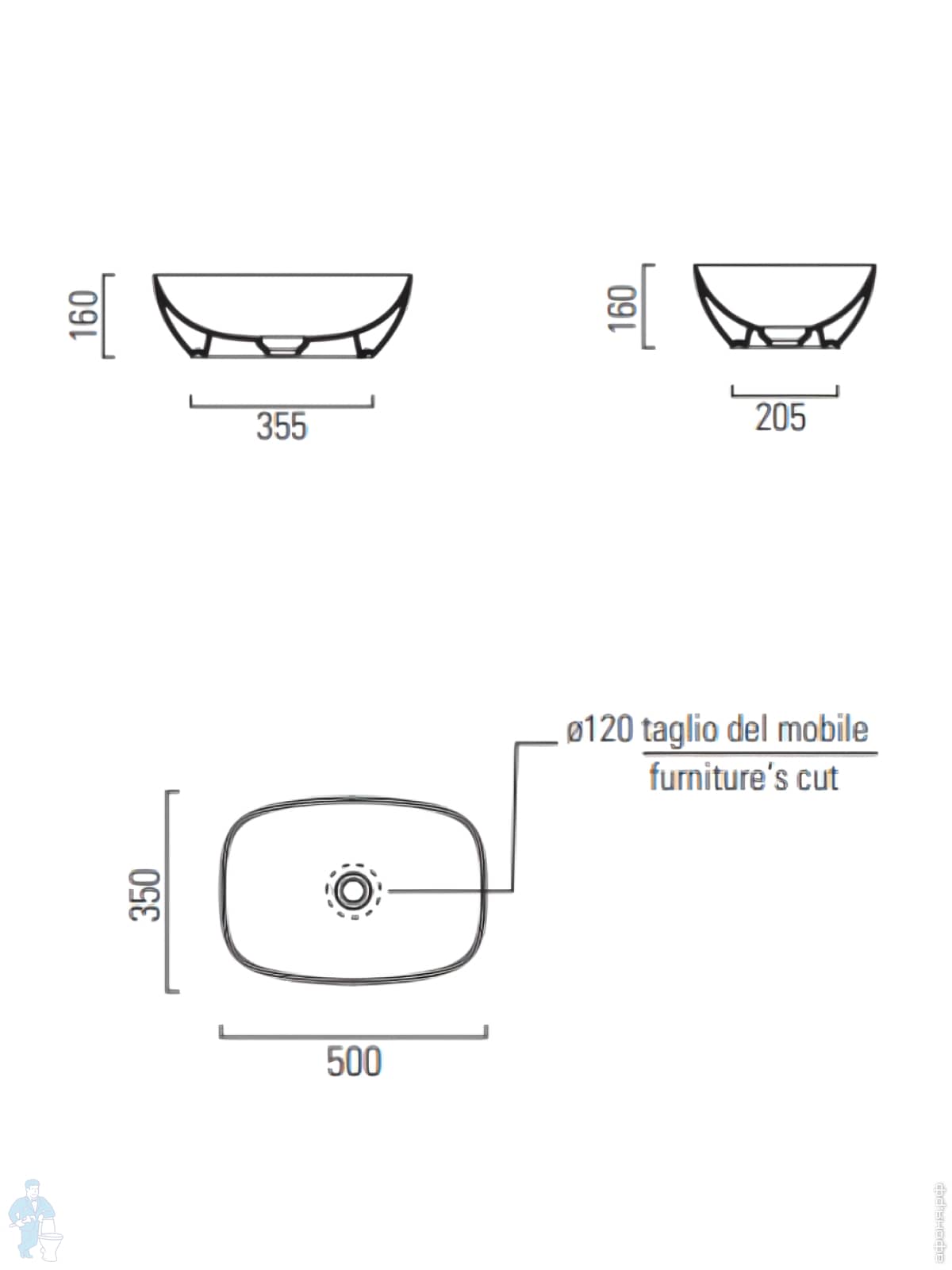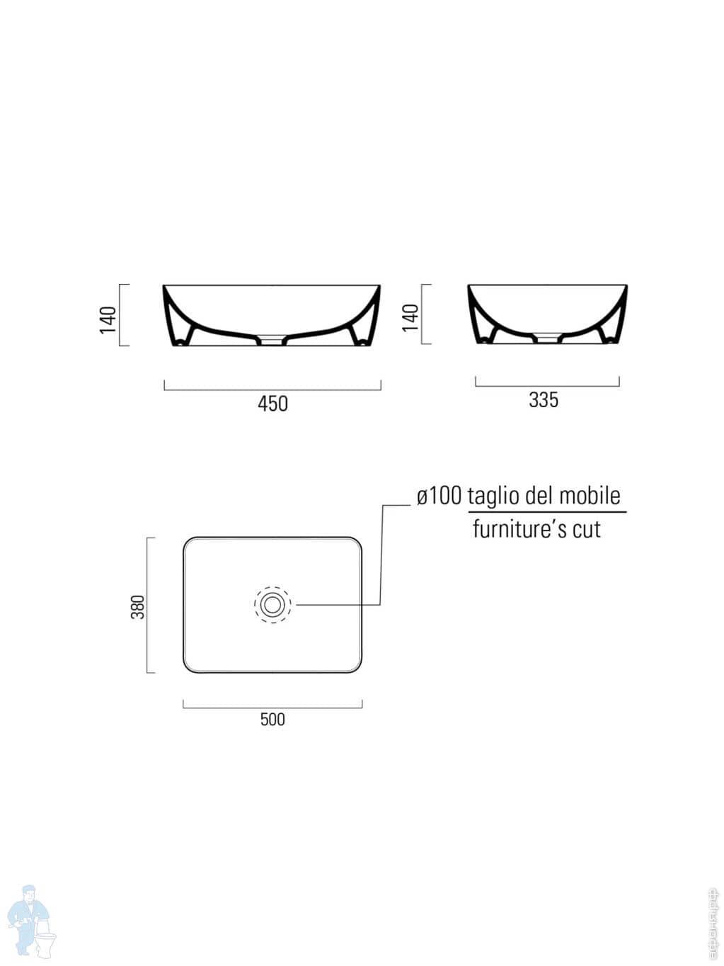 Раковина накладная/подвесная GSI Nubes 500х250х135 без перелива, с отв. под смеситель, белый 9637111Код: 325681