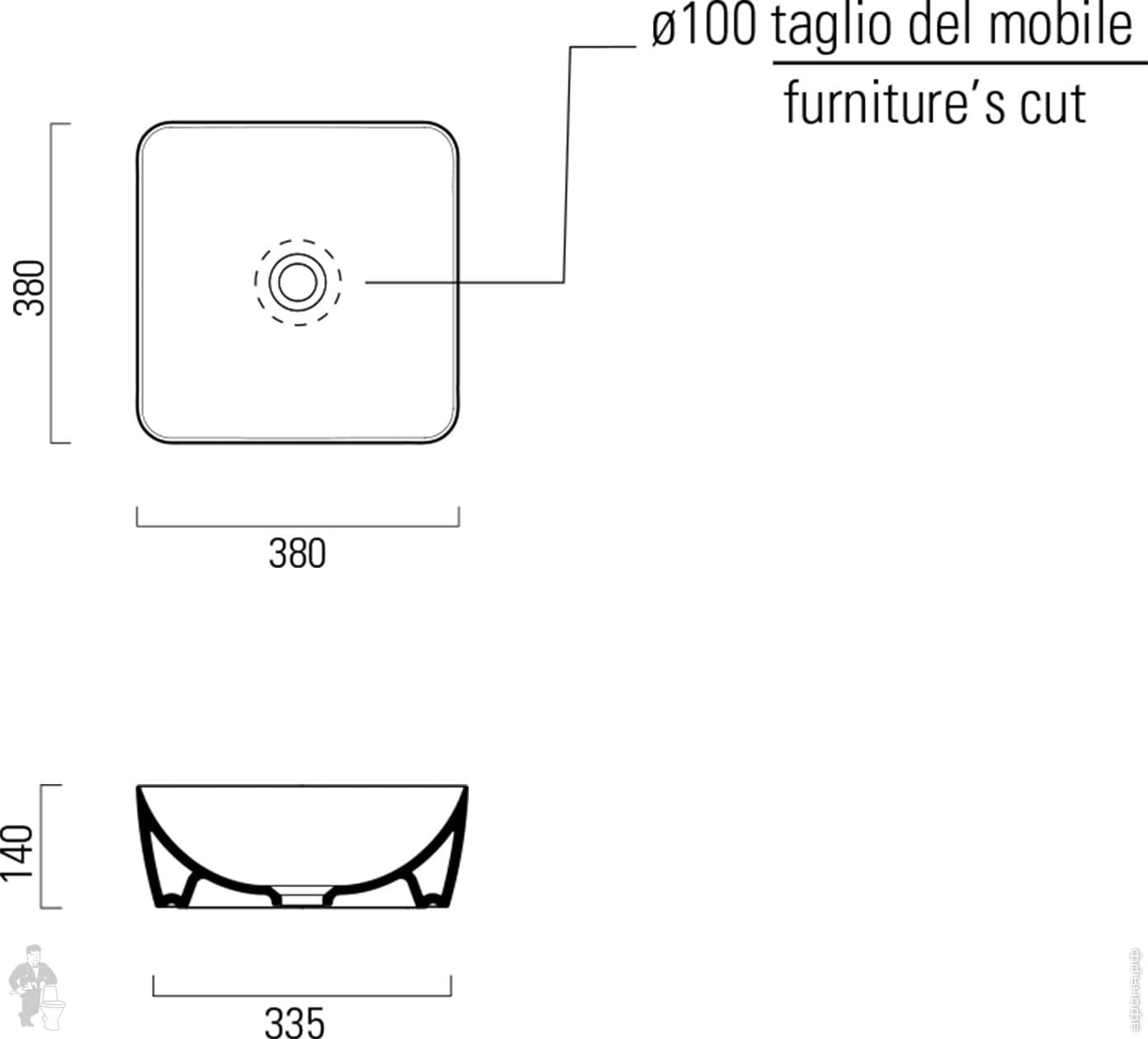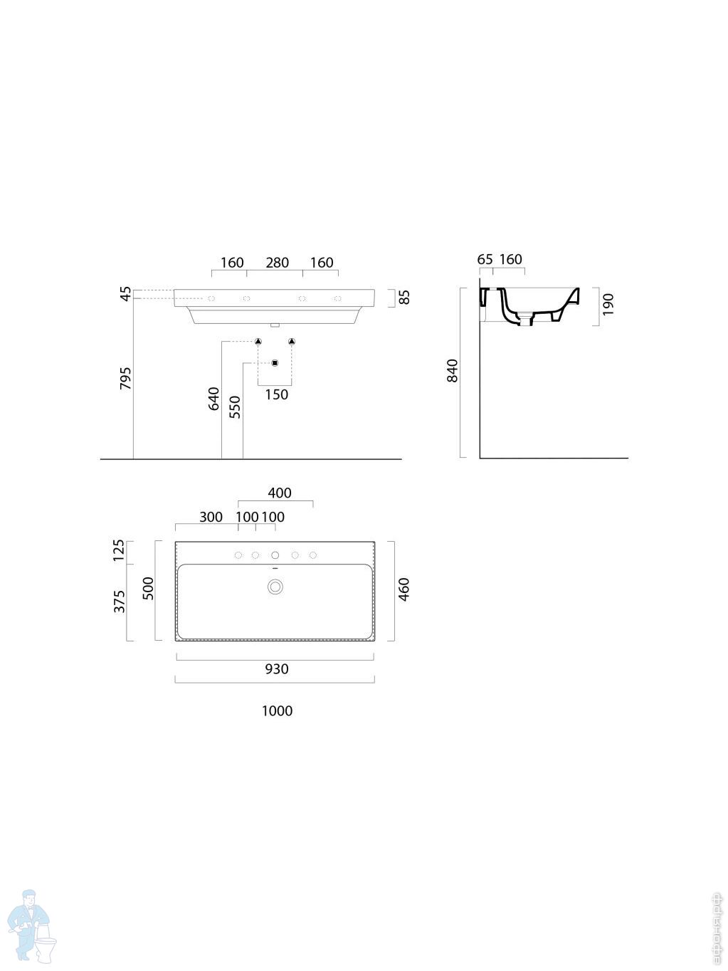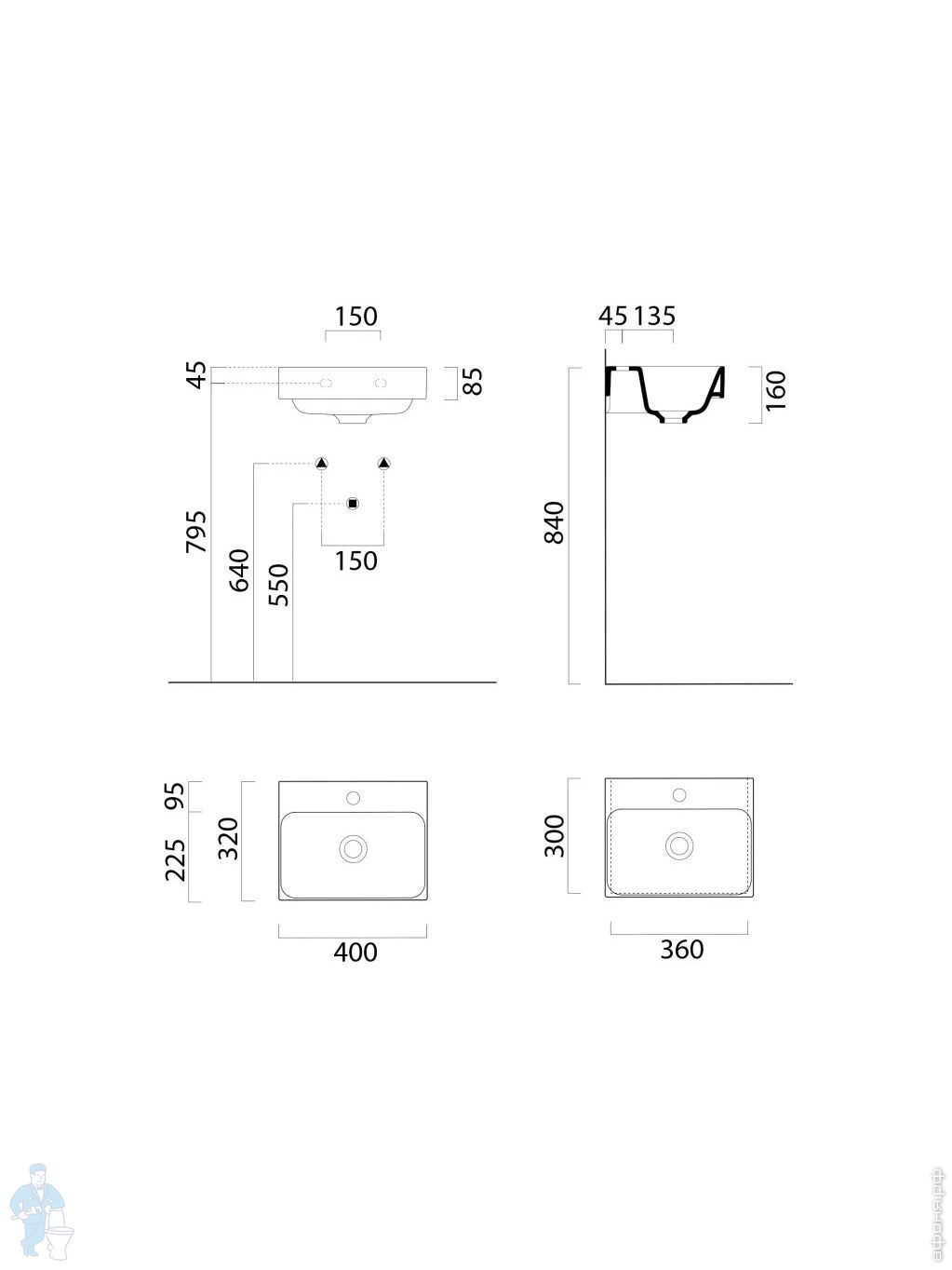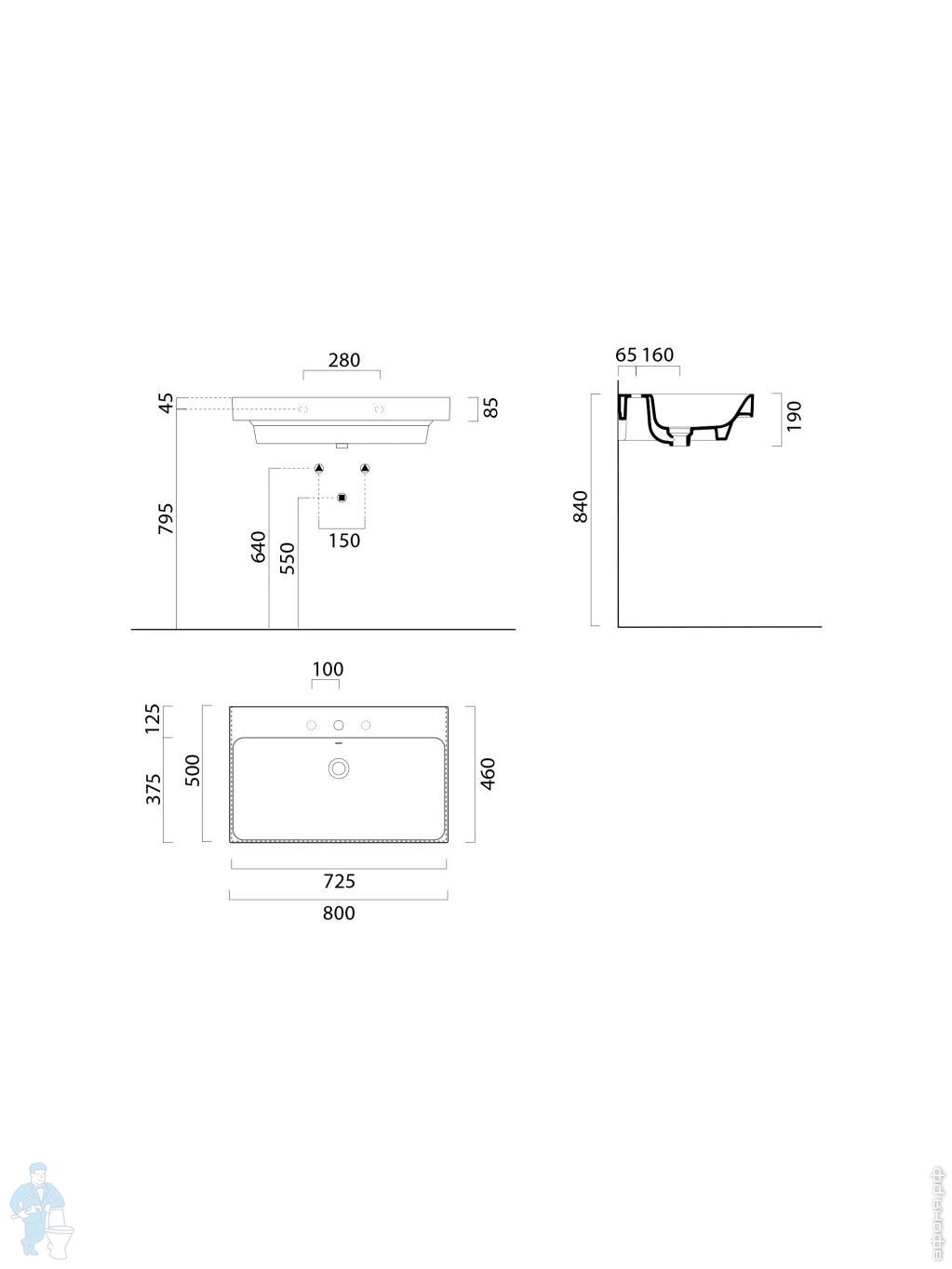 Раковина накладная/подвесная GSI Nubes 500х250х135 без перелива, с отв. под смеситель, белый 9637111Код: 325681