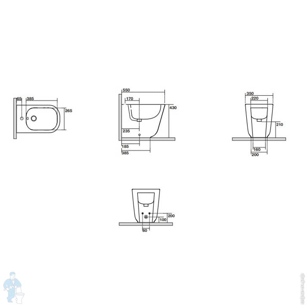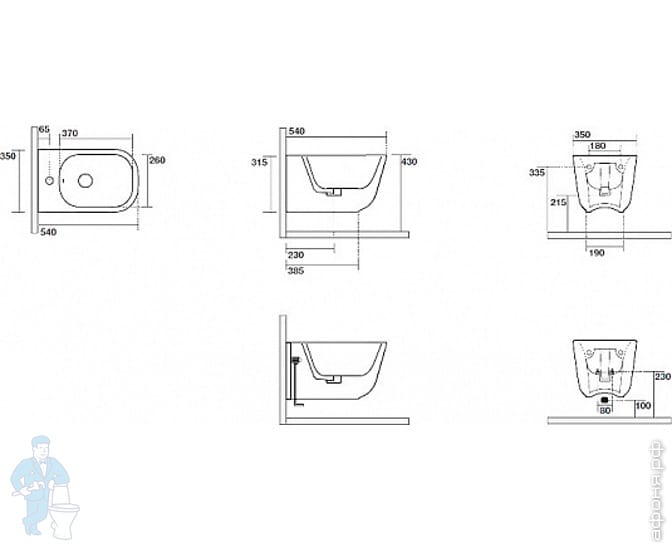 Биде приставное Kerasan Tribeca 512001 550х350х430 с отверстием под смеситель,крепление,белый глянецКод: 255731